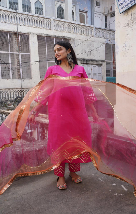 Suhana Pink Pure Mulmul Chanderi Suit Set