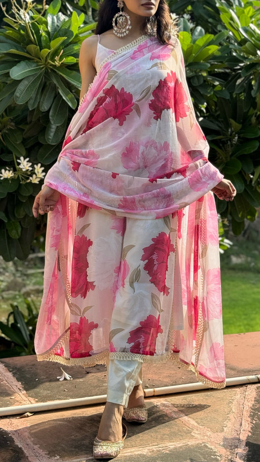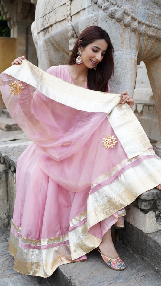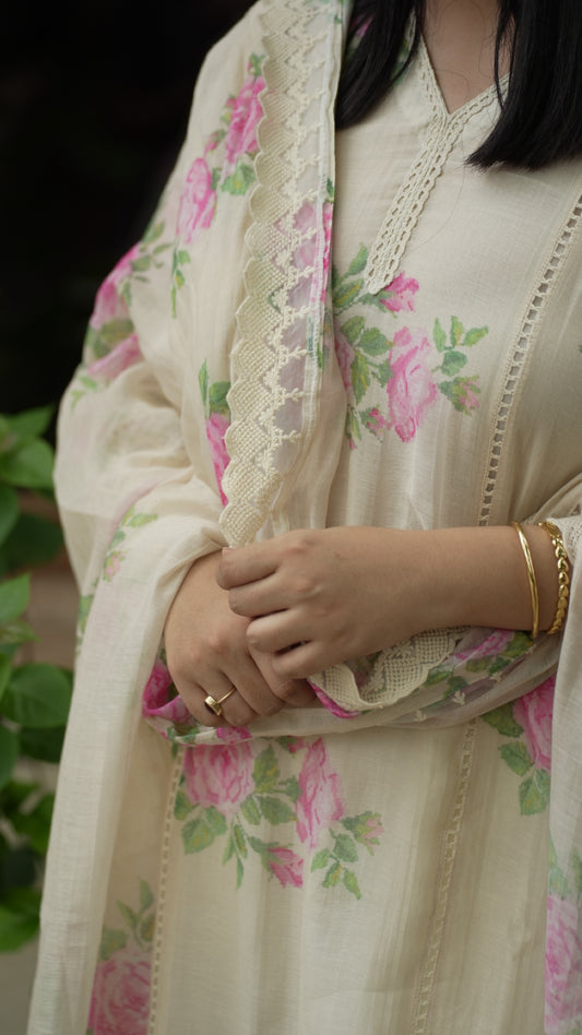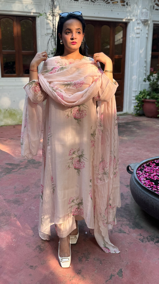 Bourbon Rose Pure Mulmul Chanderi Suit Set
