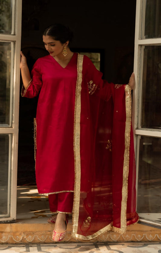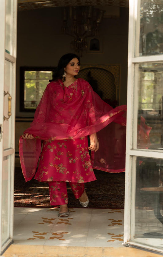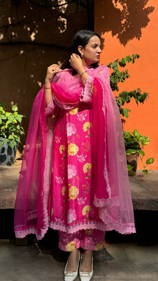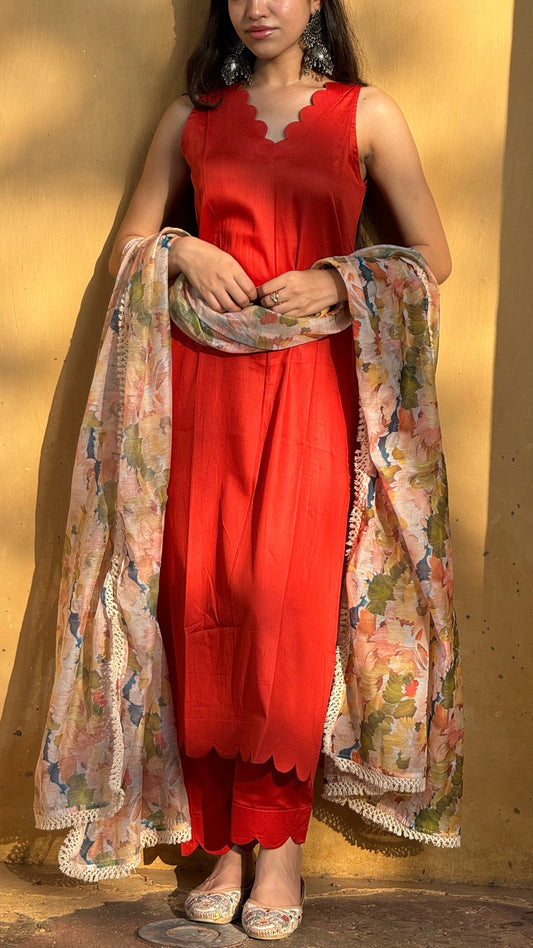 Suhana Powder Blue Pure Mulmul Chanderi Suit Set