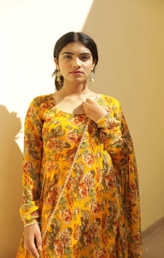 MUSTARD YELLOW ANARKALI SUIT SET