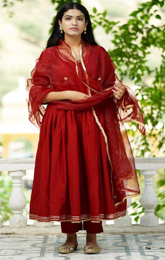 BRICK RED ANARKALI SUIT SET