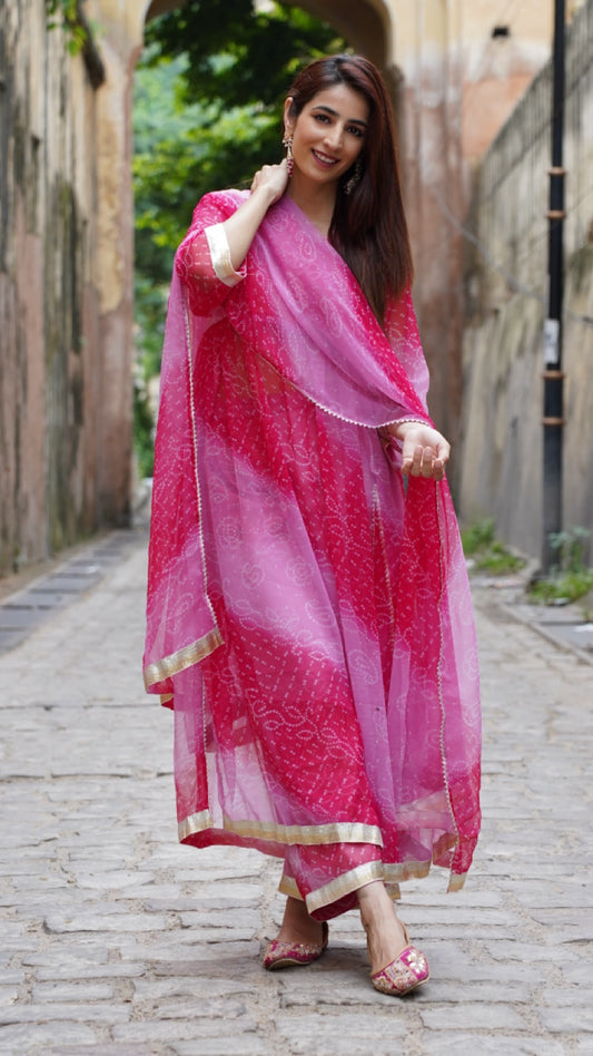Bourbon Rose Pure Mulmul Chanderi Suit Set