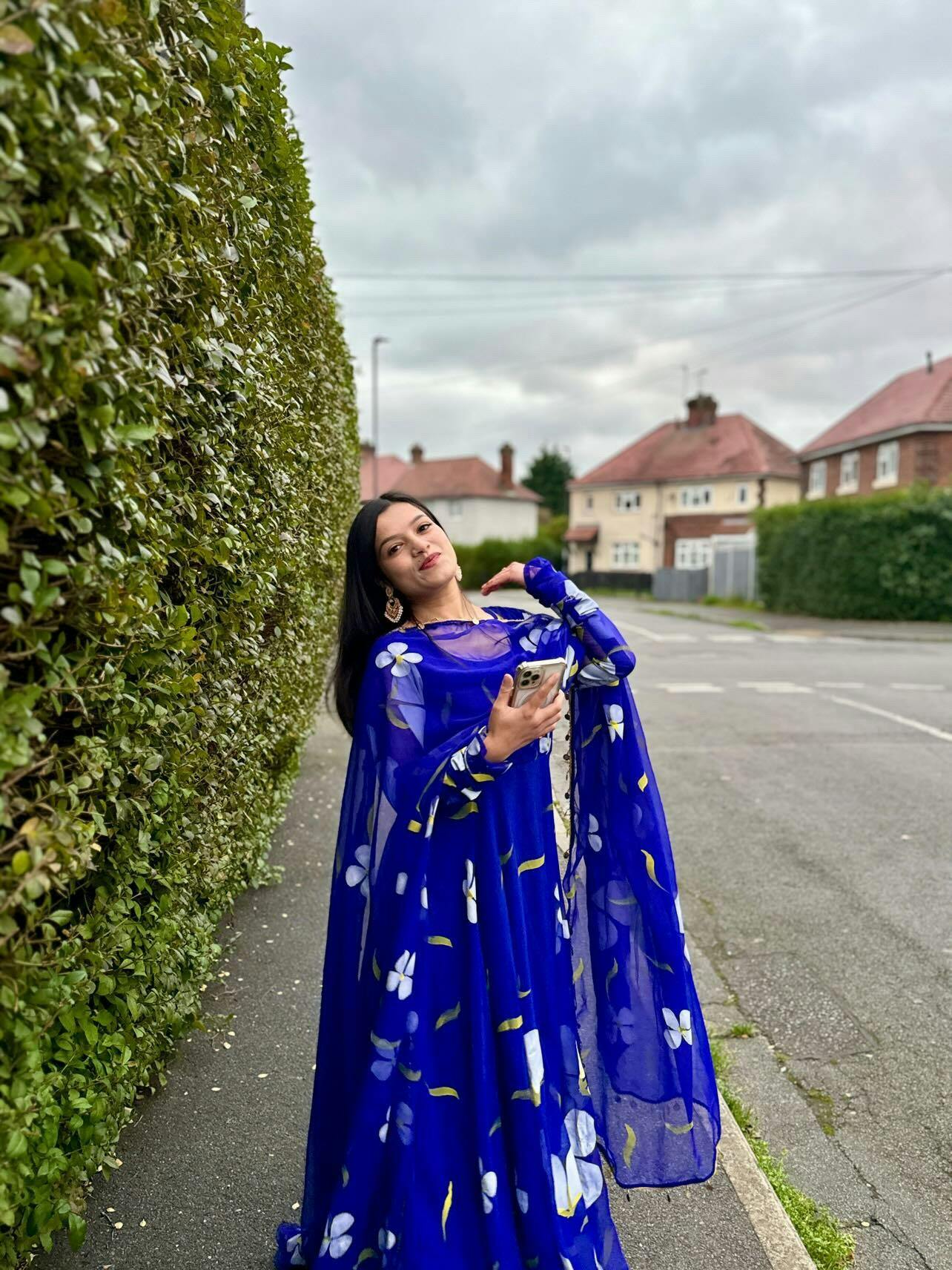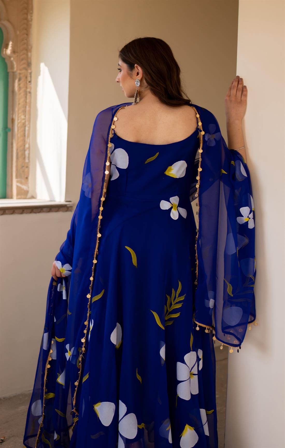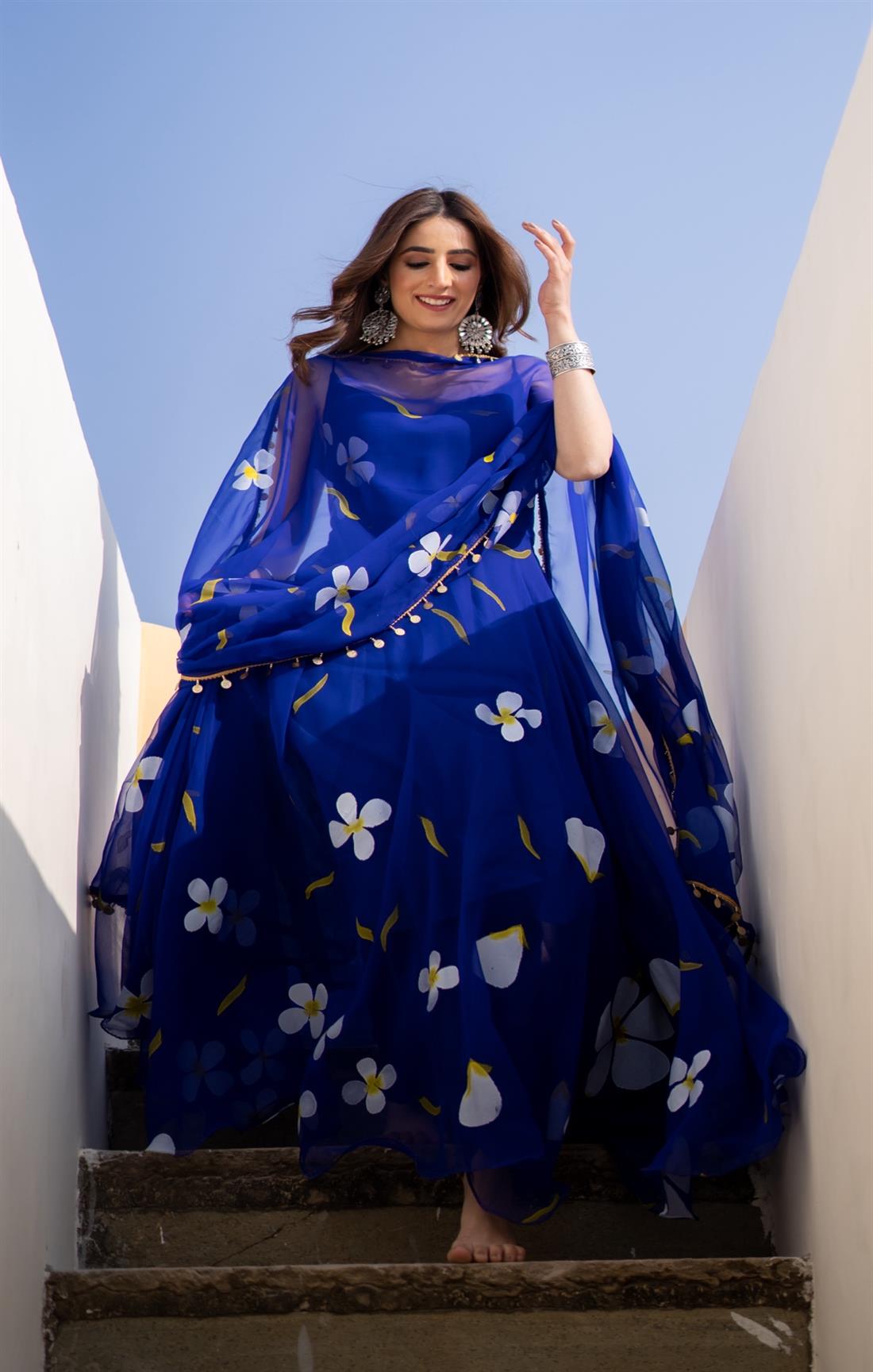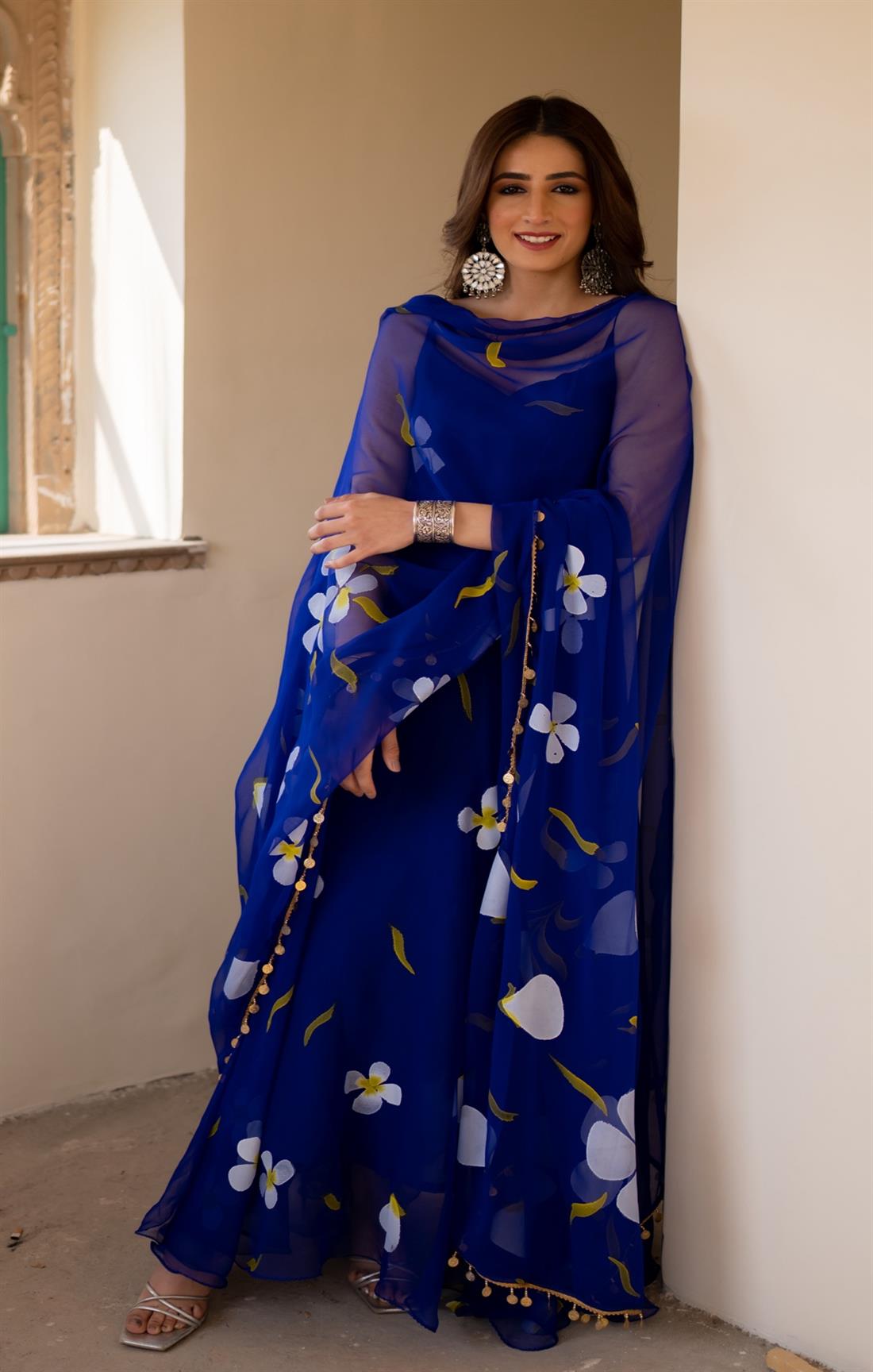 Top : Georgette Chiffon (Handpainted) With Mulmul Cotton Lining