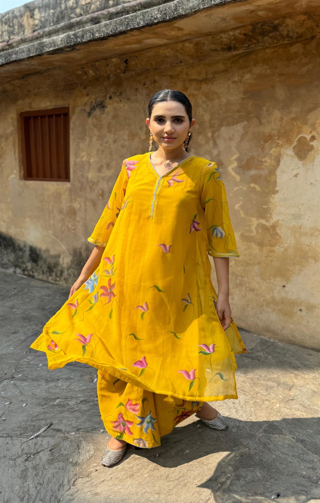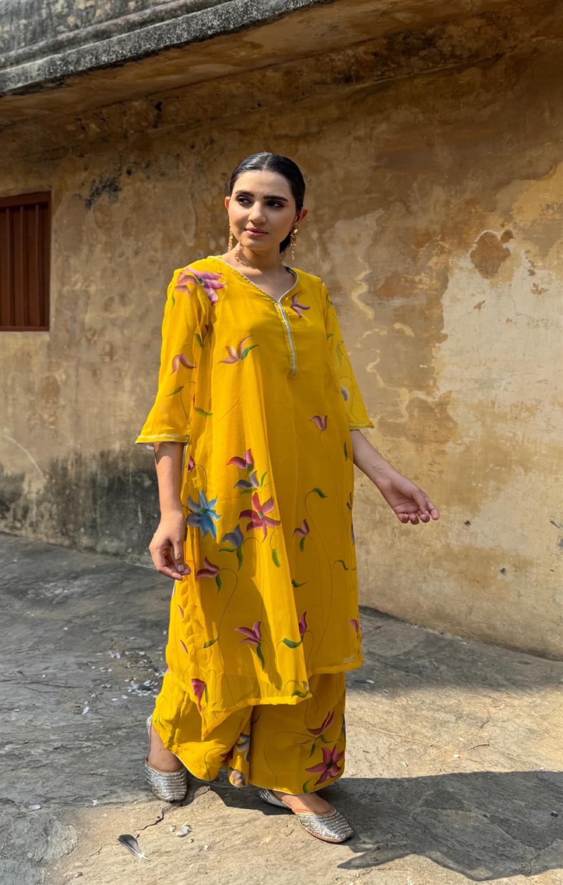 Top: Georgette Chiffon (Handpainted) With Pure Cotton Inner