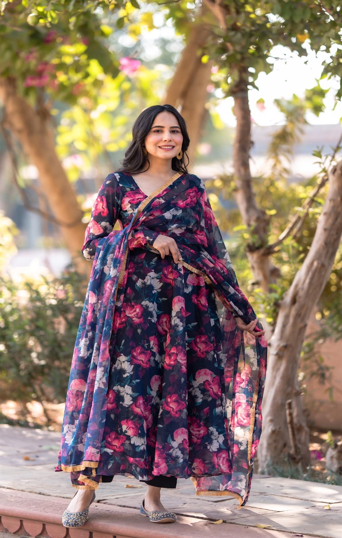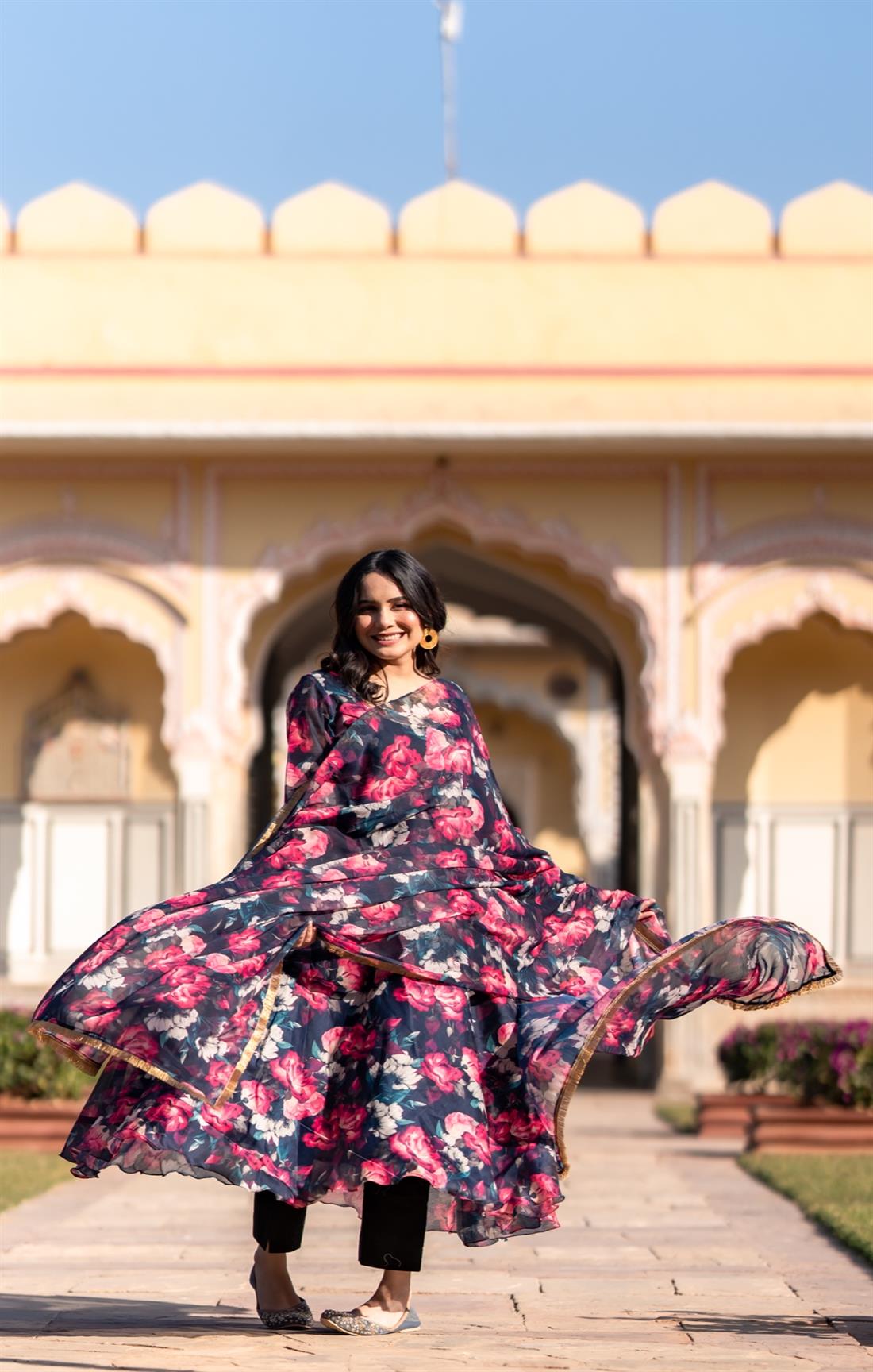 We capture our images using natural sunlight to ensure that the product showcased on our website closely resembles its real-life appearance. Additionally, certain items and shades might appear slightly more vibrant in photographs due to the camera lens accentuating specific colours. Colour perception can differ based on variables like shooting angles, lighting conditions, background shades, and colour temperatures. Hence, there might be a slight variation in prints and colours. However, we make every effort to closely match the tones with the original product hues.