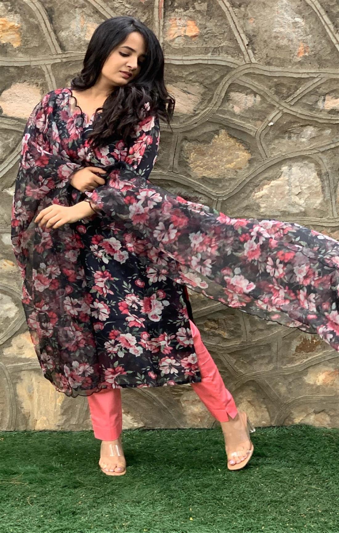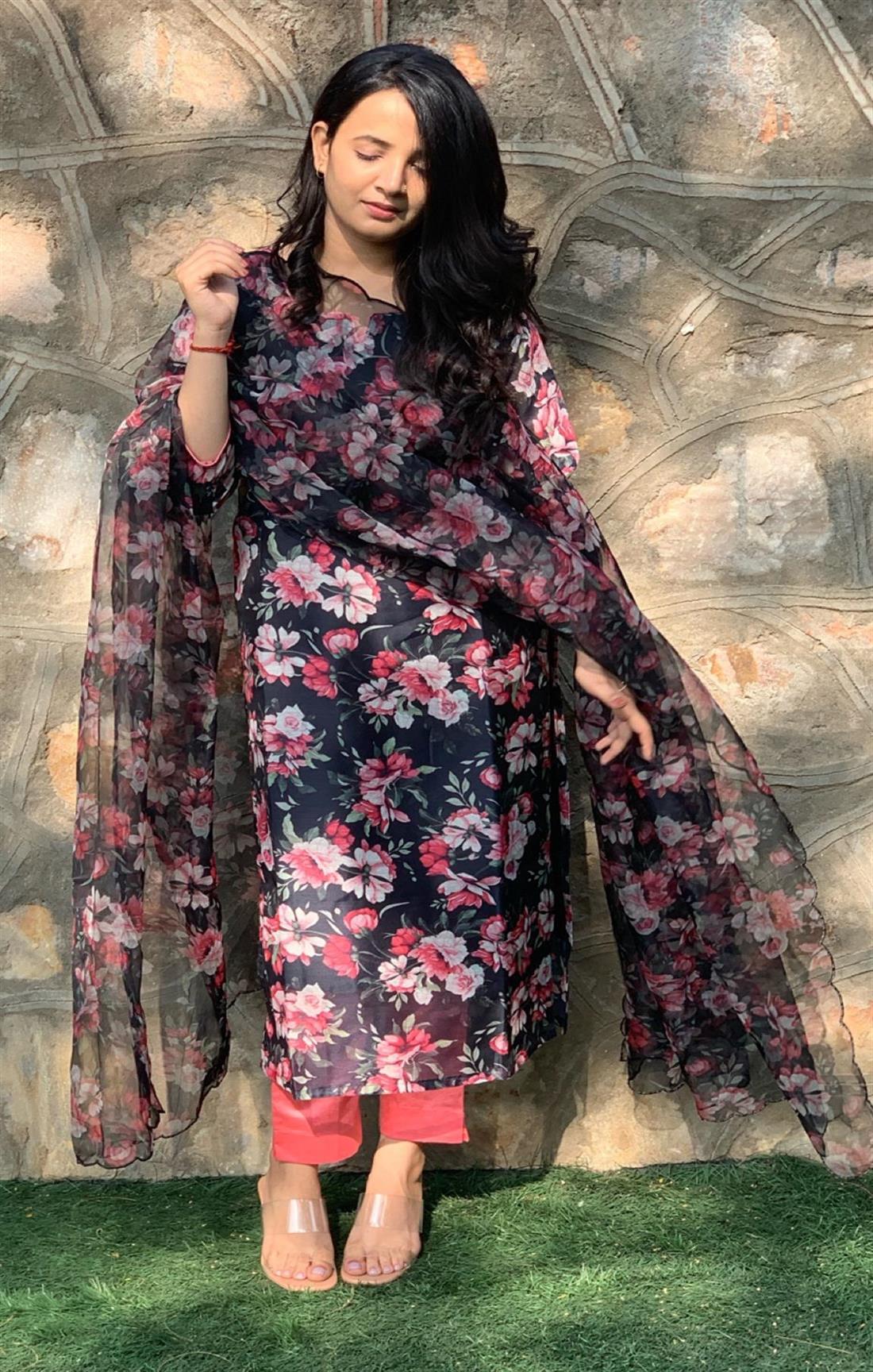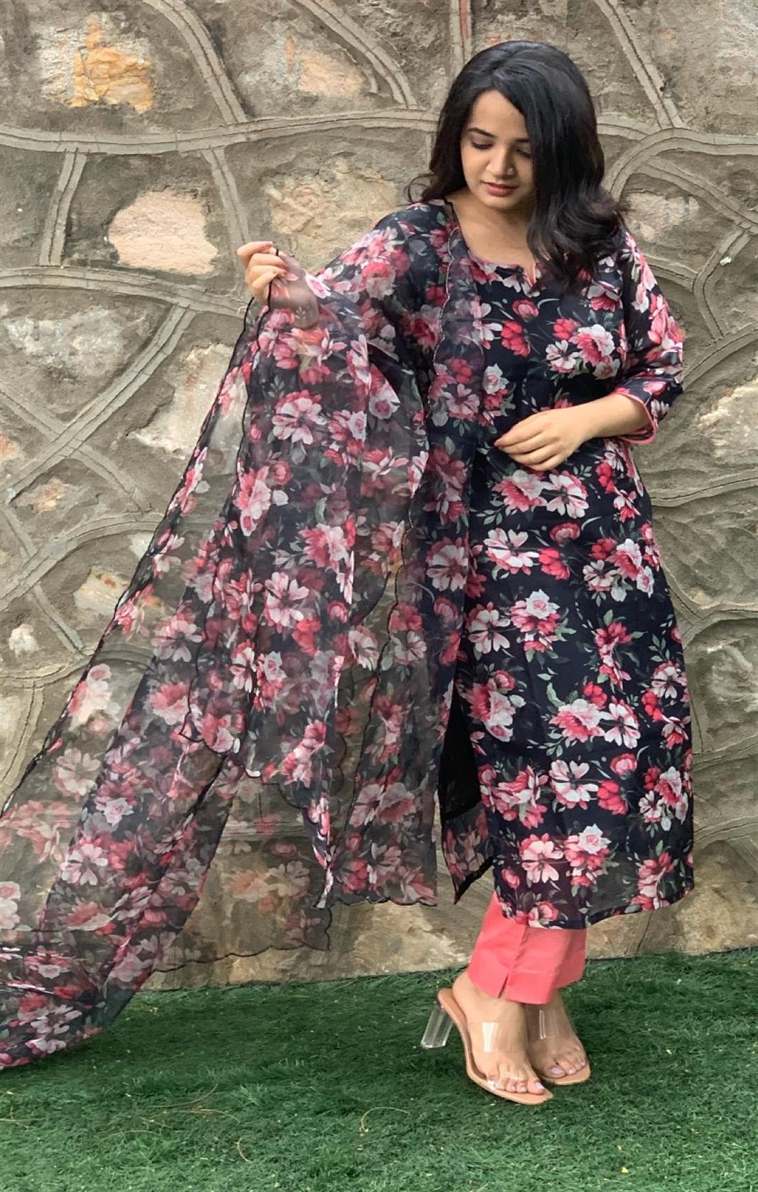 BLACK & PINK FLORAL SUIT SET