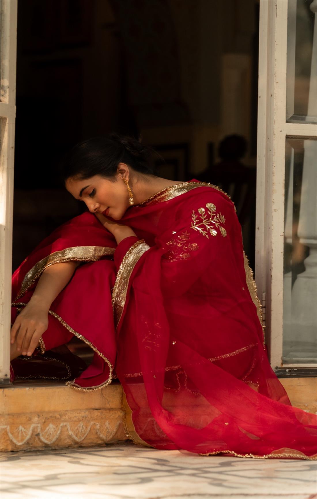 Dupatta : Pure Organza (Sequin Butta Embroidery all over the Dupatta Handcrafted Work )
