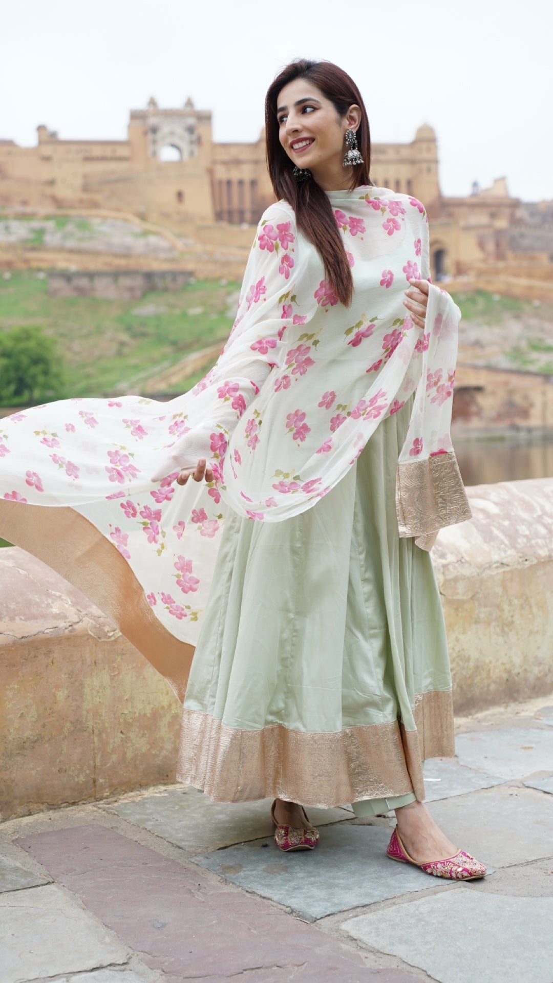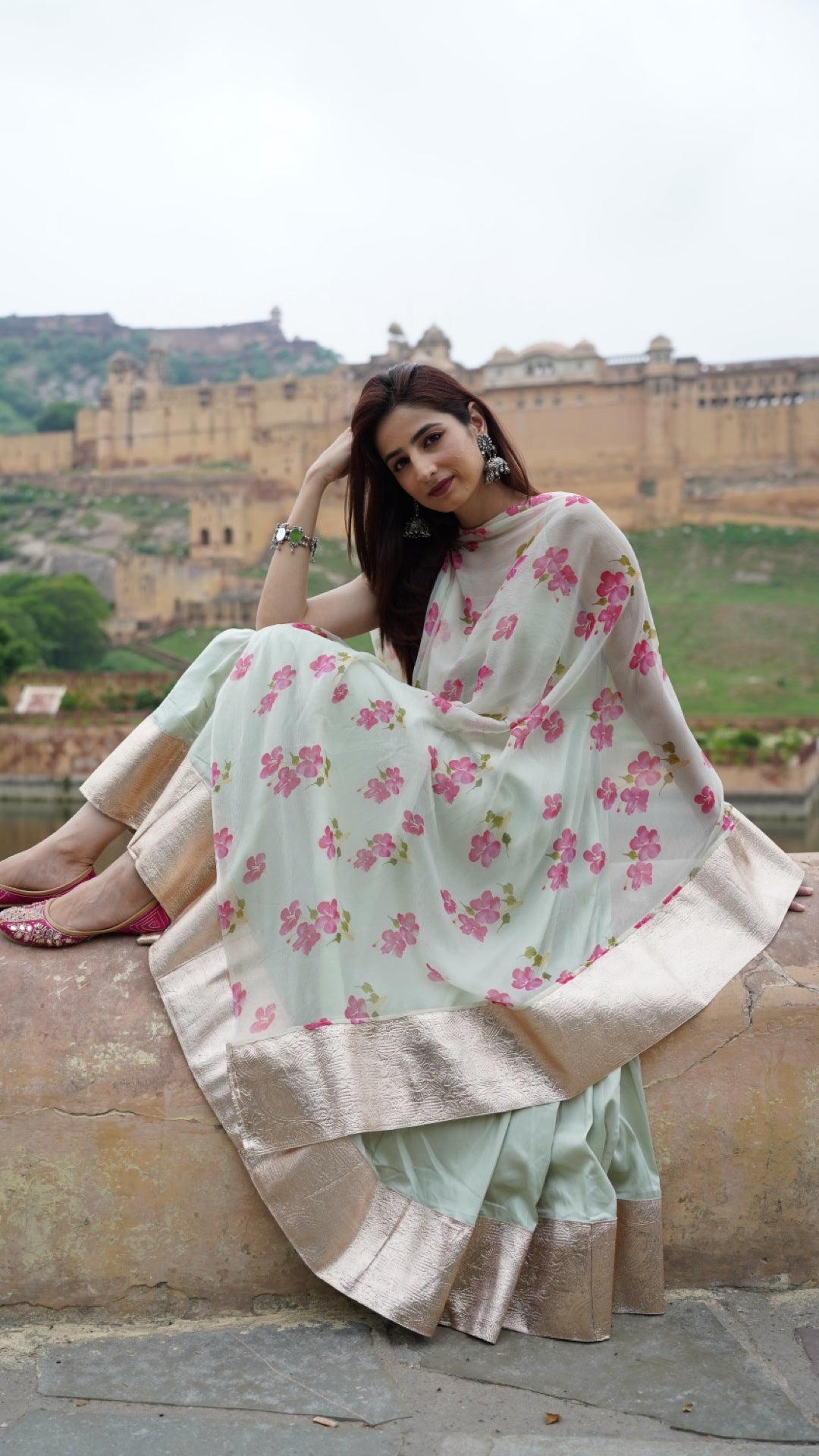 Dupatta: Pure Chiffon With Gotta Border at Ends