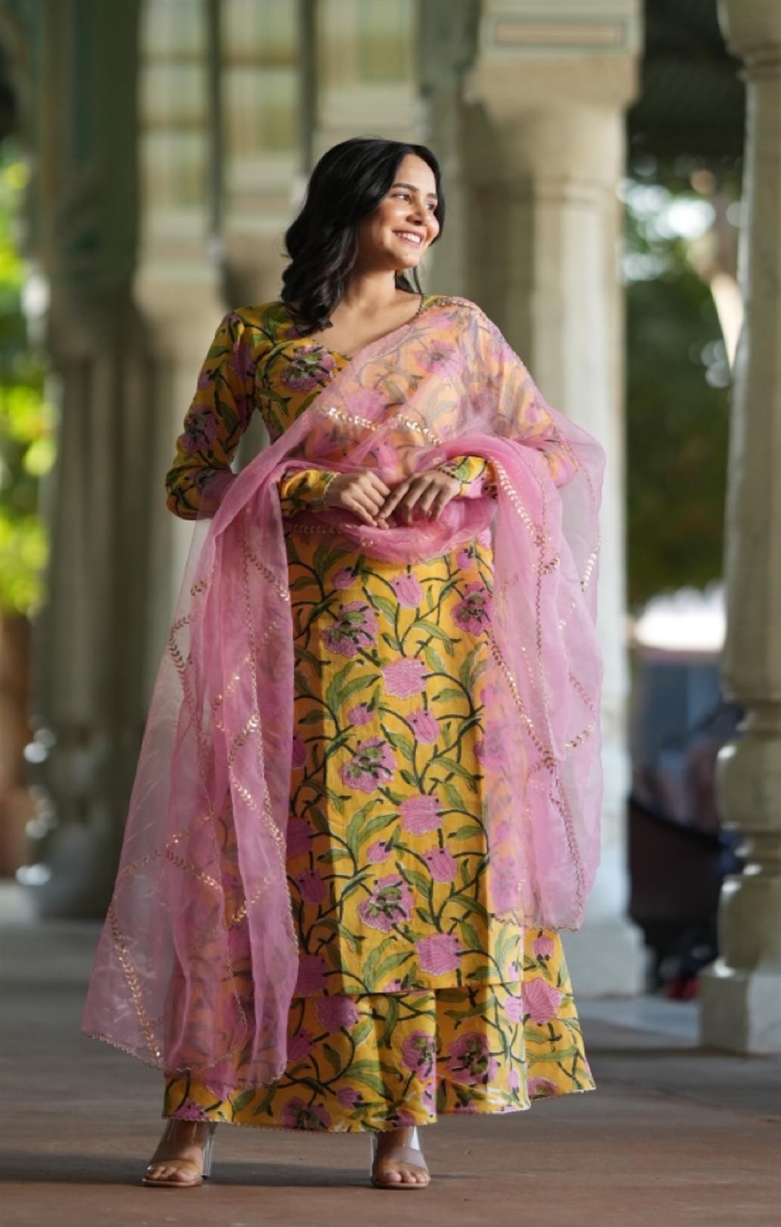 We capture our images using natural sunlight to ensure that the product showcased on our website closely resembles its real-life appearance. Additionally, certain items and shades might appear slightly more vibrant in photographs due to the camera lens accentuating specific colours. Colour perception can differ based on variables like shooting angles, lighting conditions, background shades, and colour temperatures. Hence, there might be a slight variation in prints and colours. However, we make every effort to closely match the tones with the original product hues.