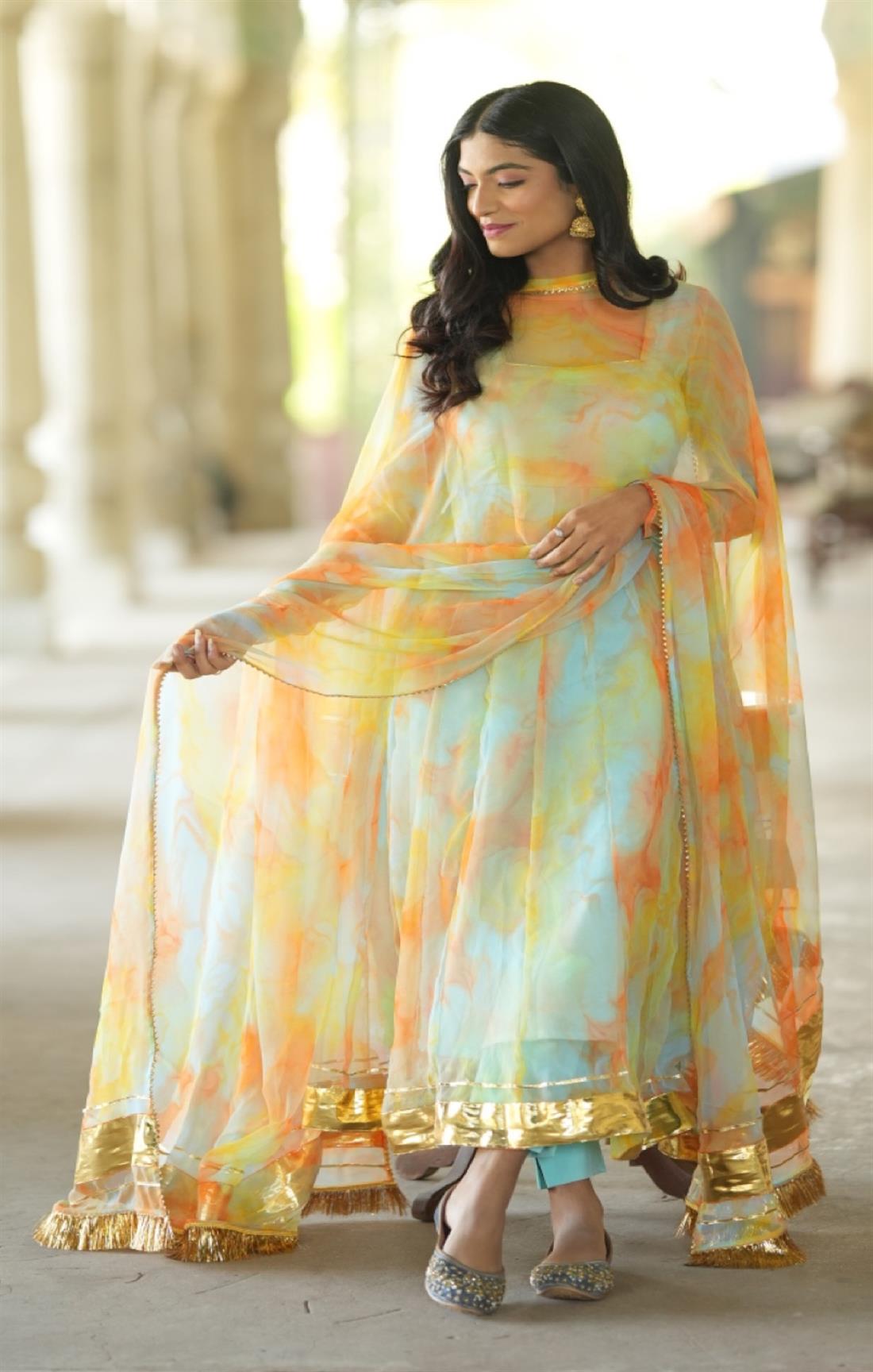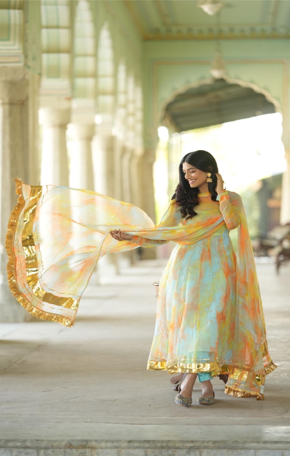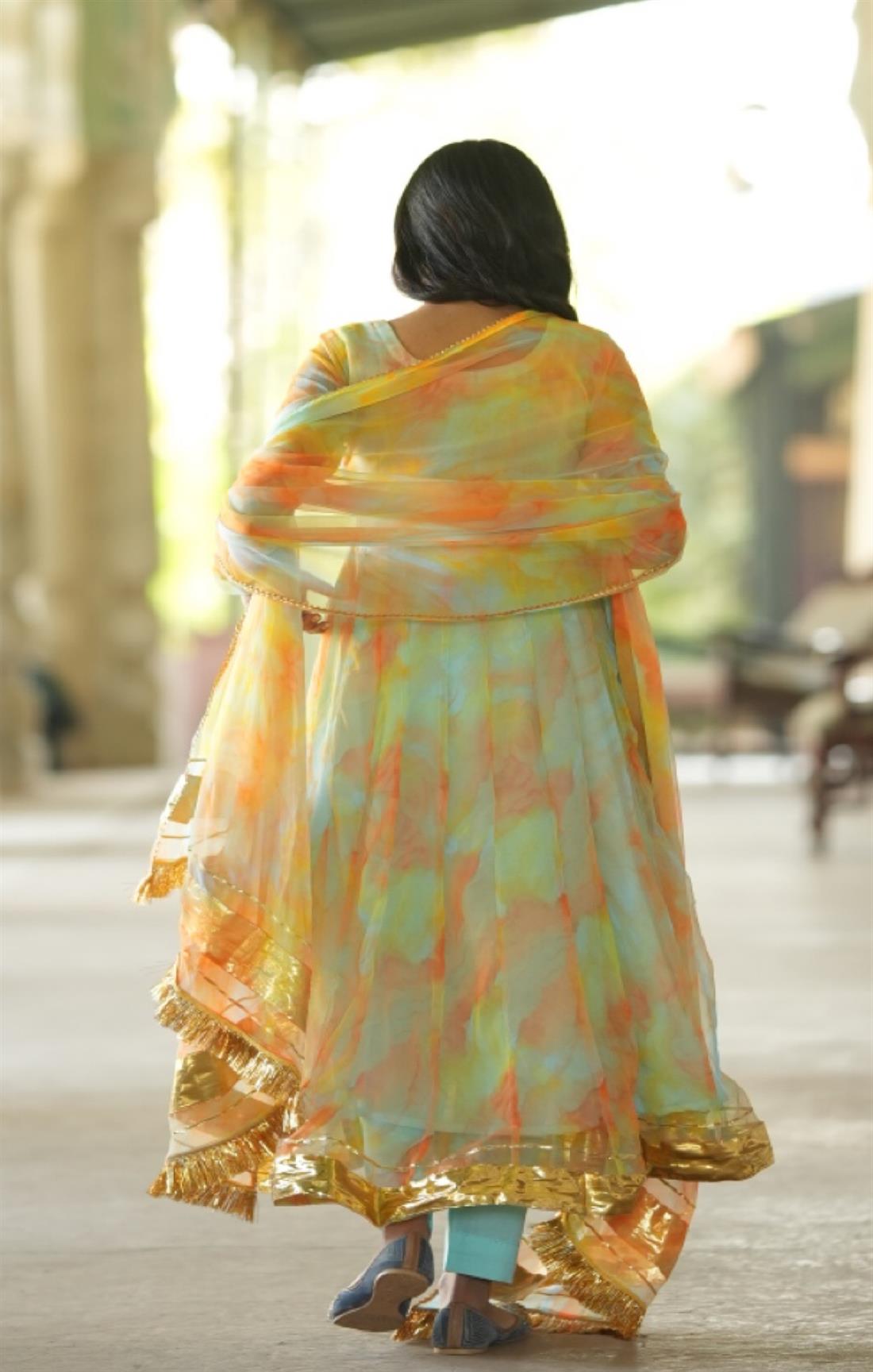 We capture our images using natural sunlight to ensure that the product showcased on our website closely resembles its real-life appearance. Additionally, certain items and shades might appear slightly more vibrant in photographs due to the camera lens accentuating specific colours. Colour perception can differ based on variables like shooting angles, lighting conditions, background shades, and colour temperatures. Hence, there might be a slight variation in prints and colours. However, we make every effort to closely match the tones with the original product hues.