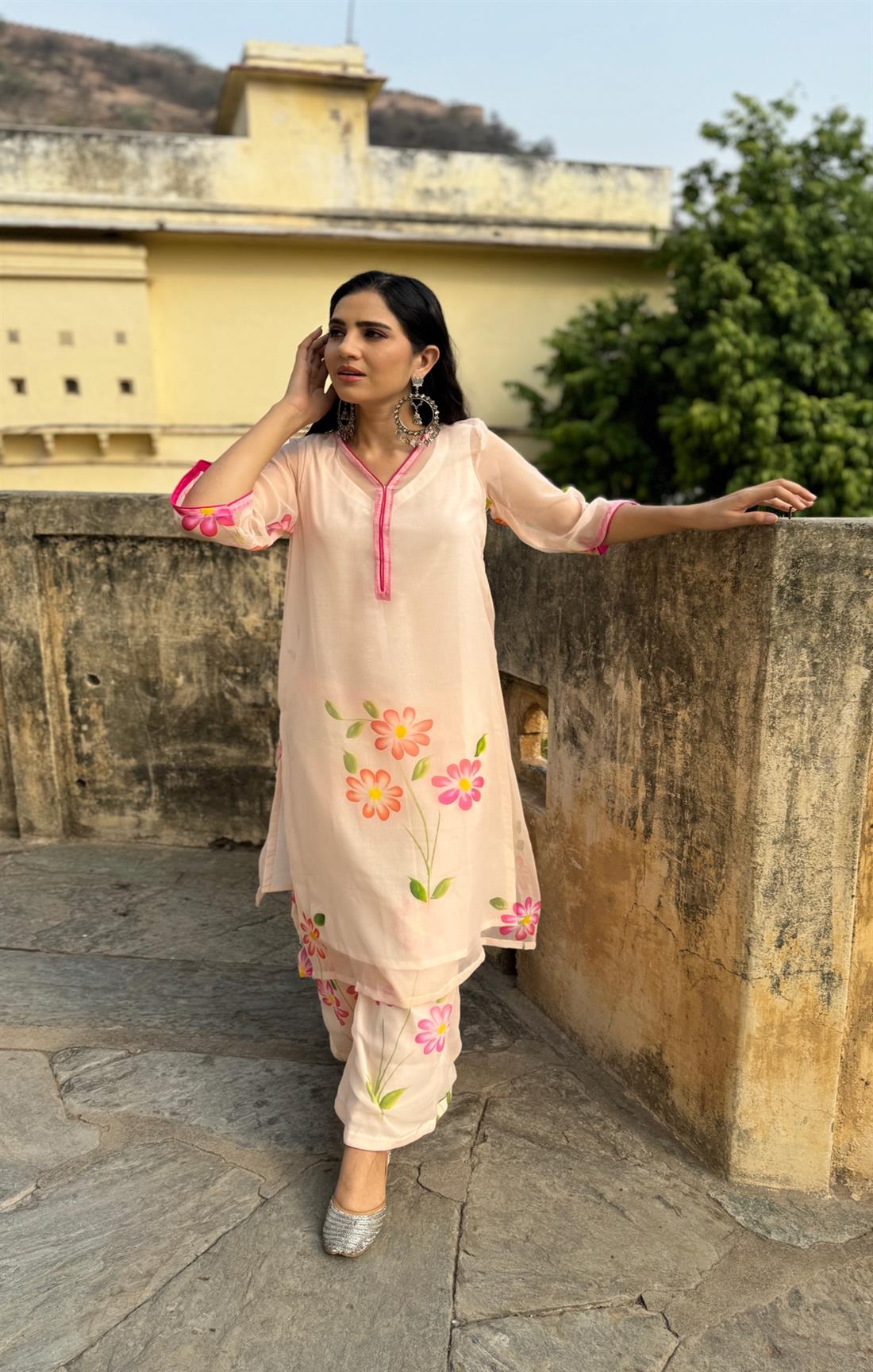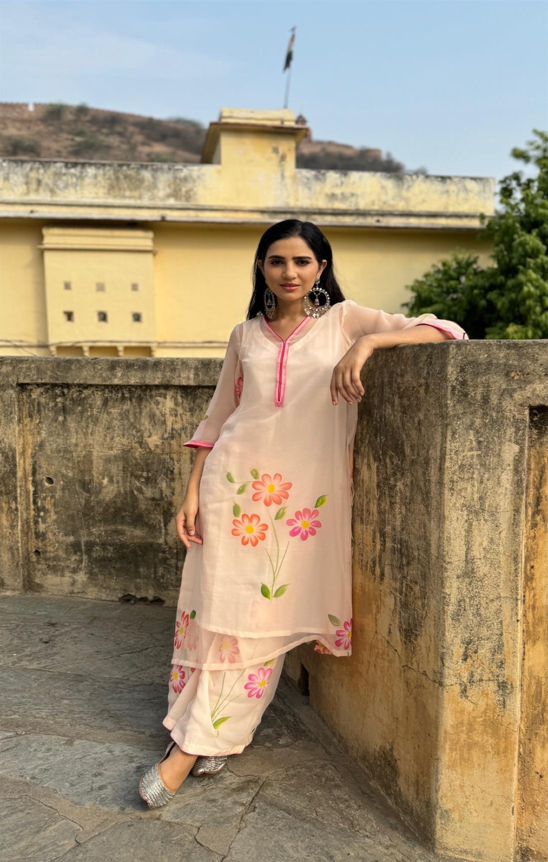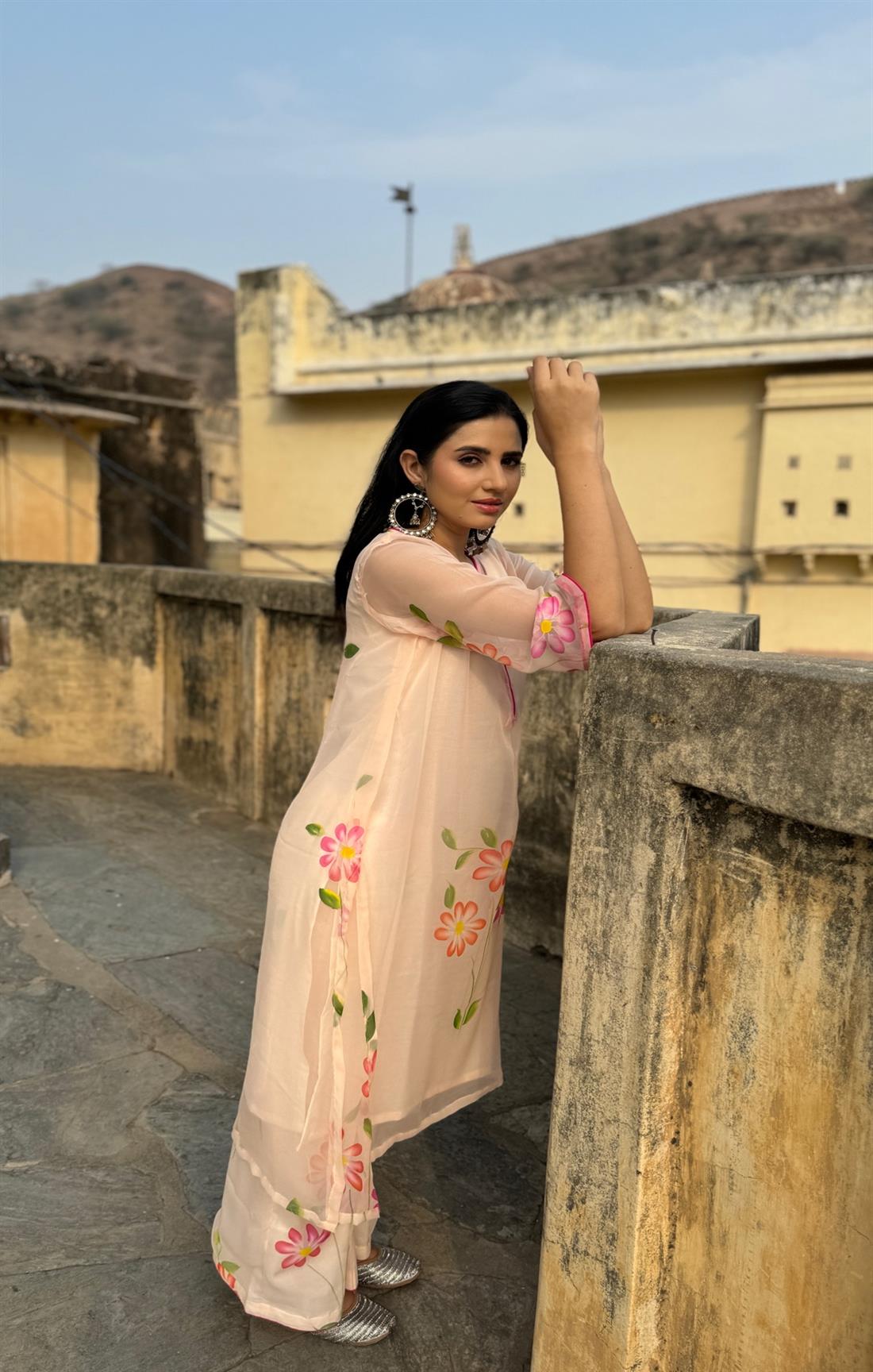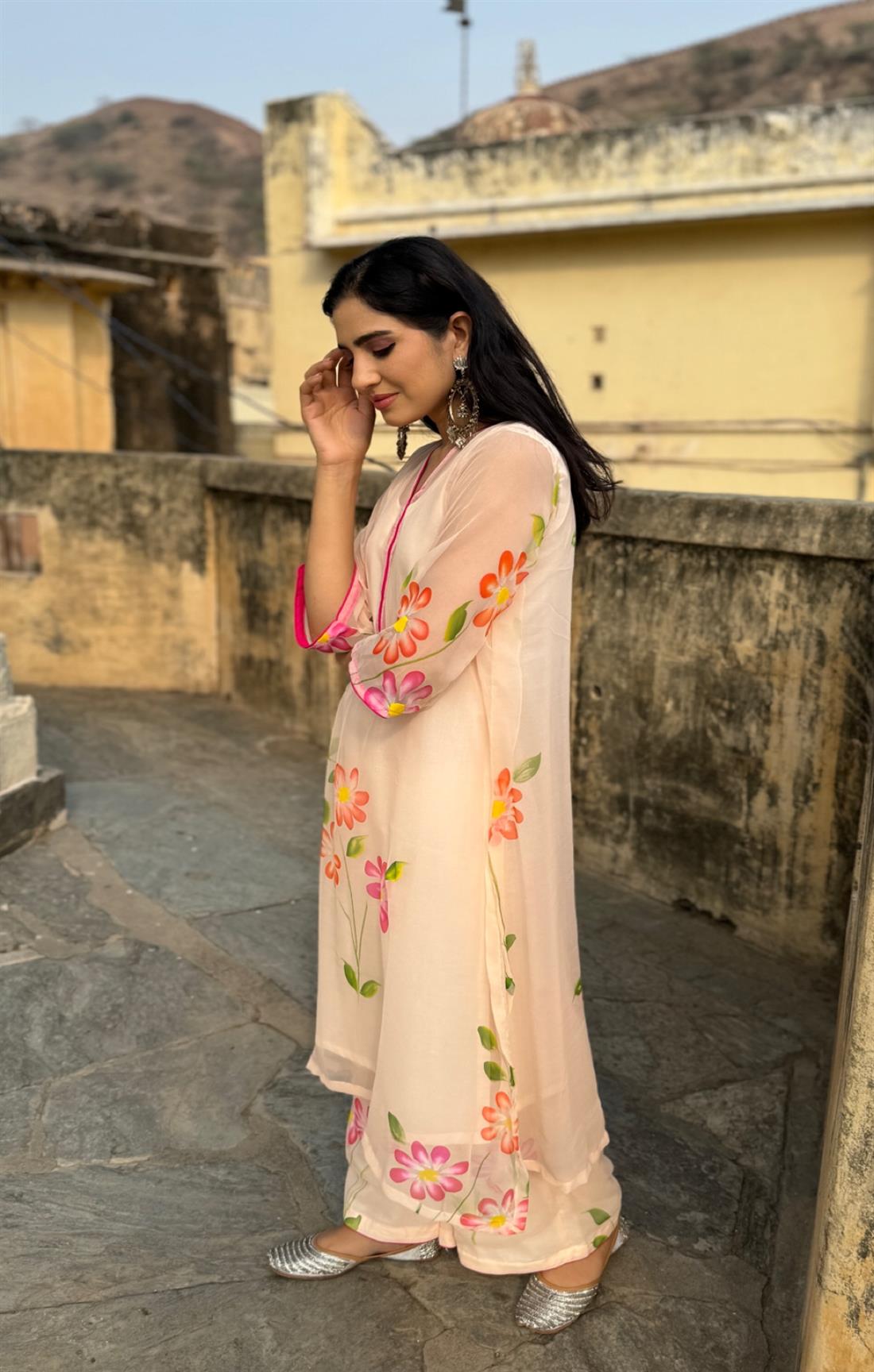 Top: Georgette Chiffon (Handpainted) With Pure Cotton Inner