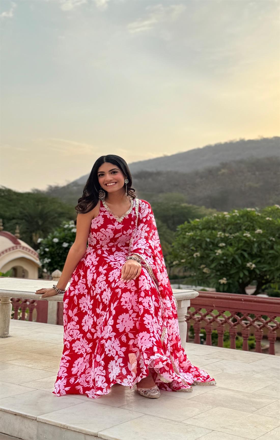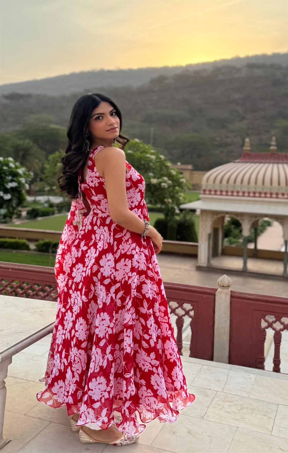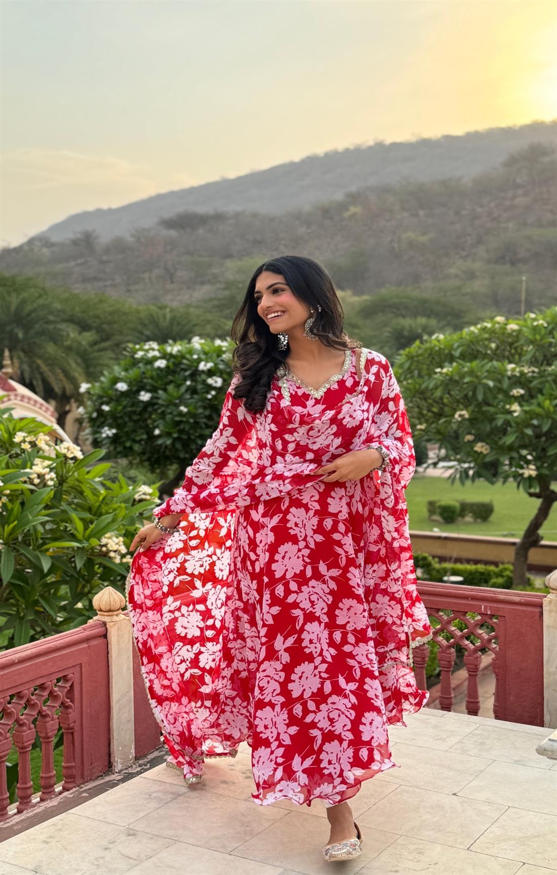 Kaveri Red Chiffon Suit Set