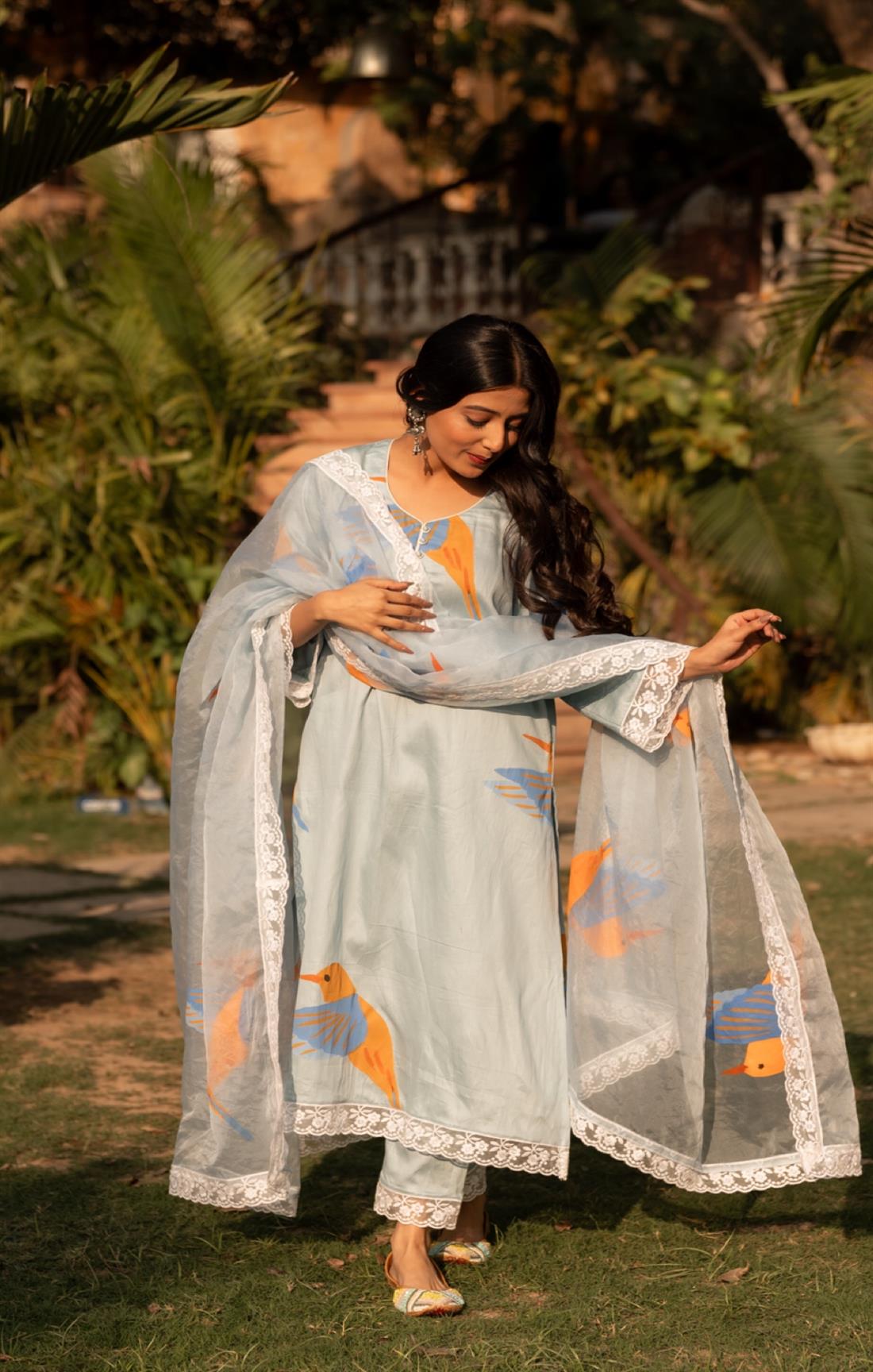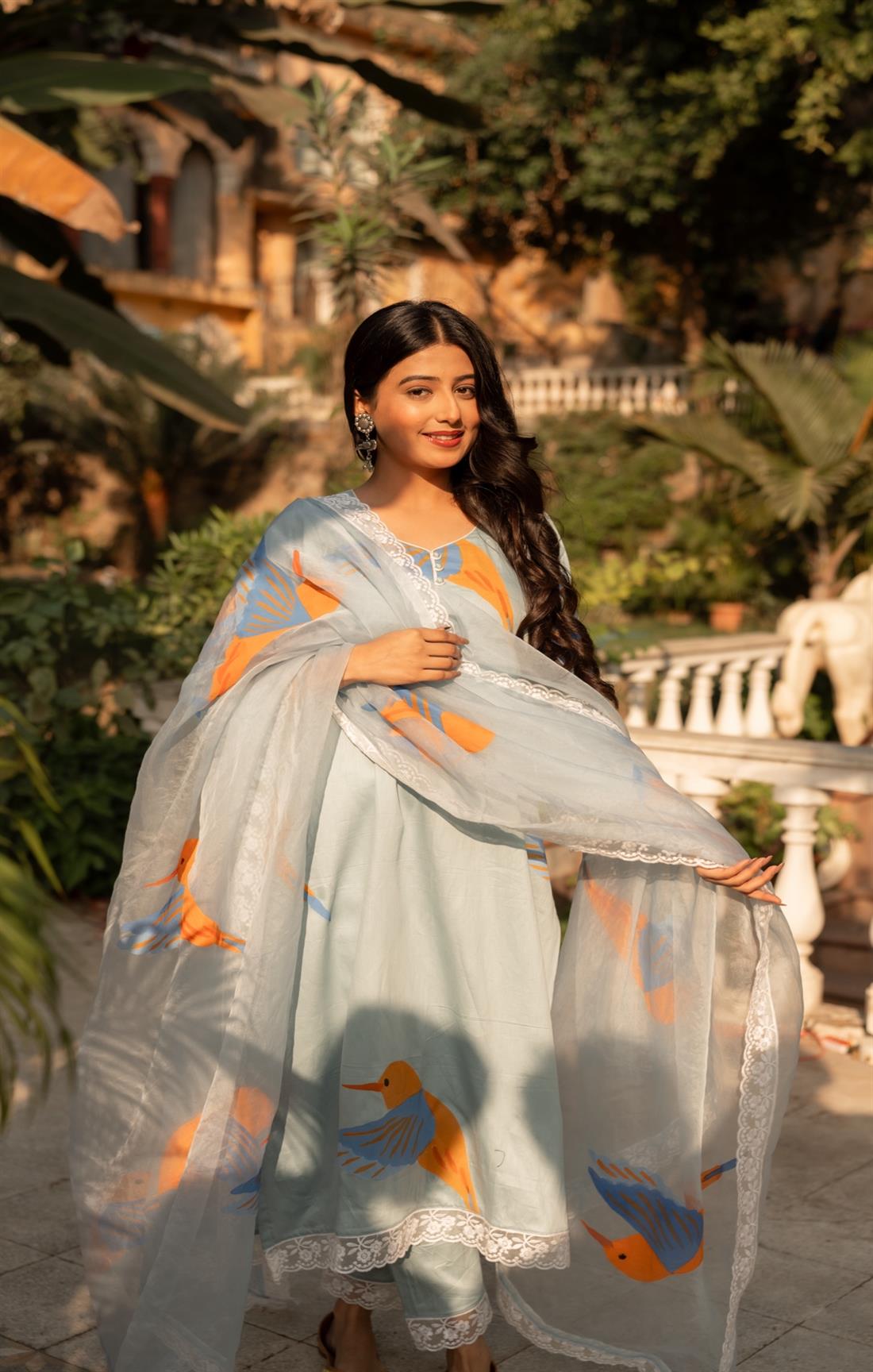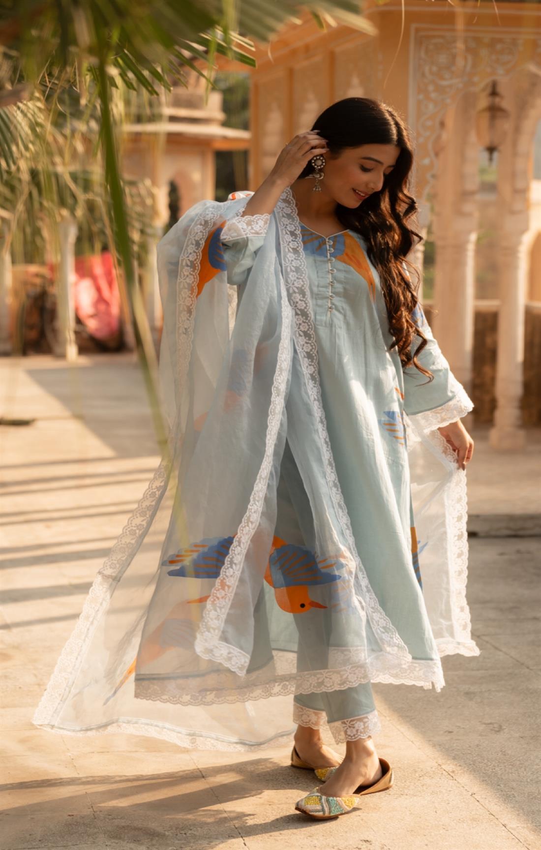We capture our images using natural sunlight to ensure that the product showcased on our website closely resembles its real-life appearance. Additionally, certain items and shades might appear slightly more vibrant in photographs due to the camera lens accentuating specific colours. Colour perception can differ based on variables like shooting angles, lighting conditions, background shades, and colour temperatures. Hence, there might be a slight variation in prints and colours. However, we make every effort to closely match the tones with the original product hues.