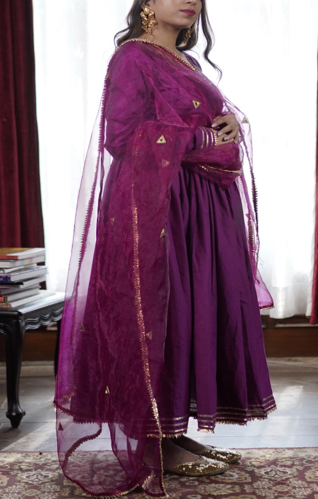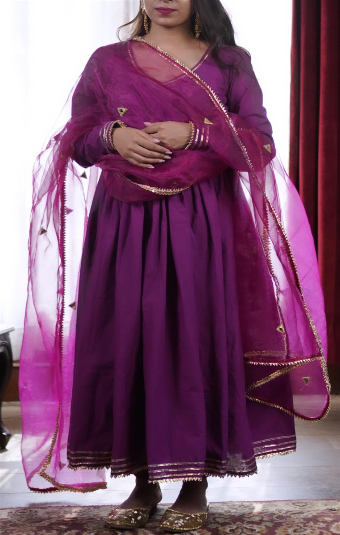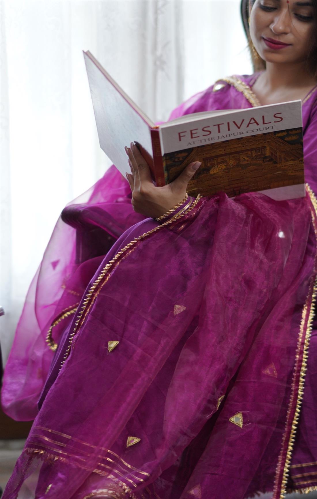MAGENTA TISSUE SILK MIRROR SUIT SET