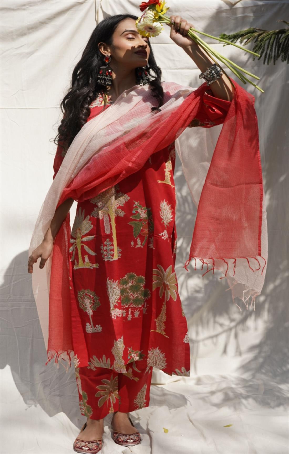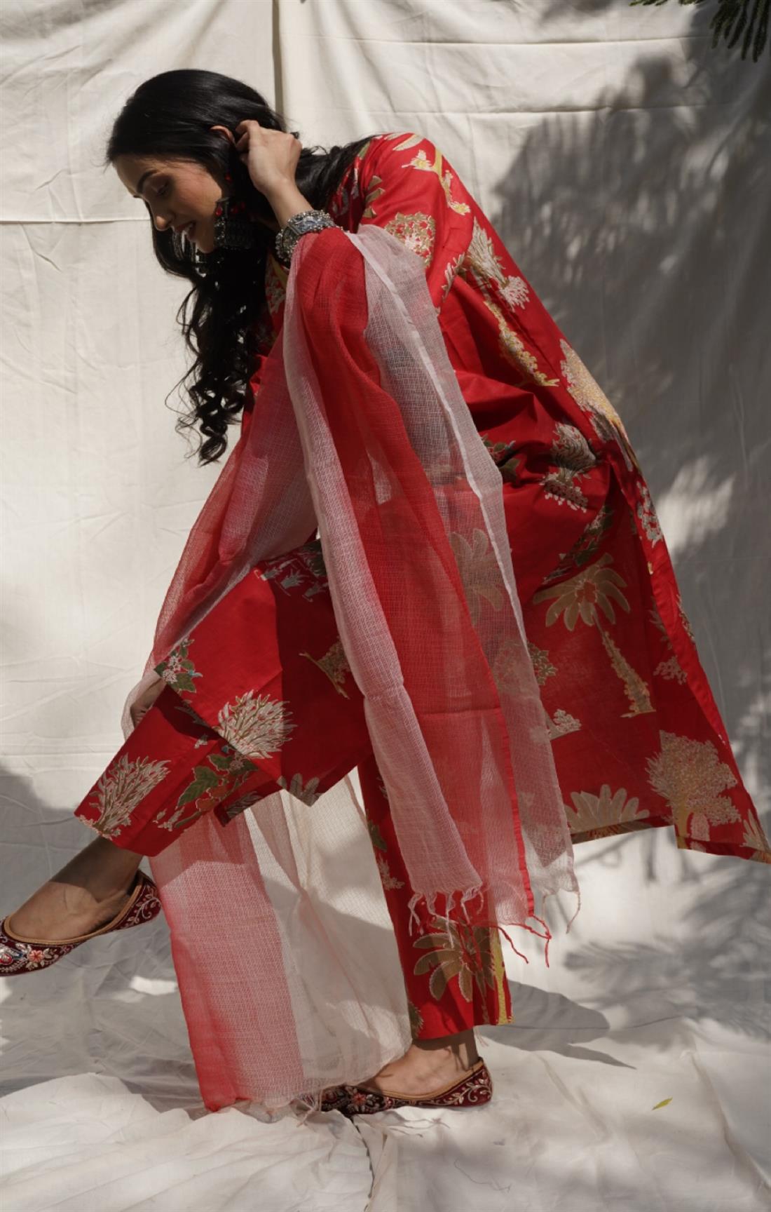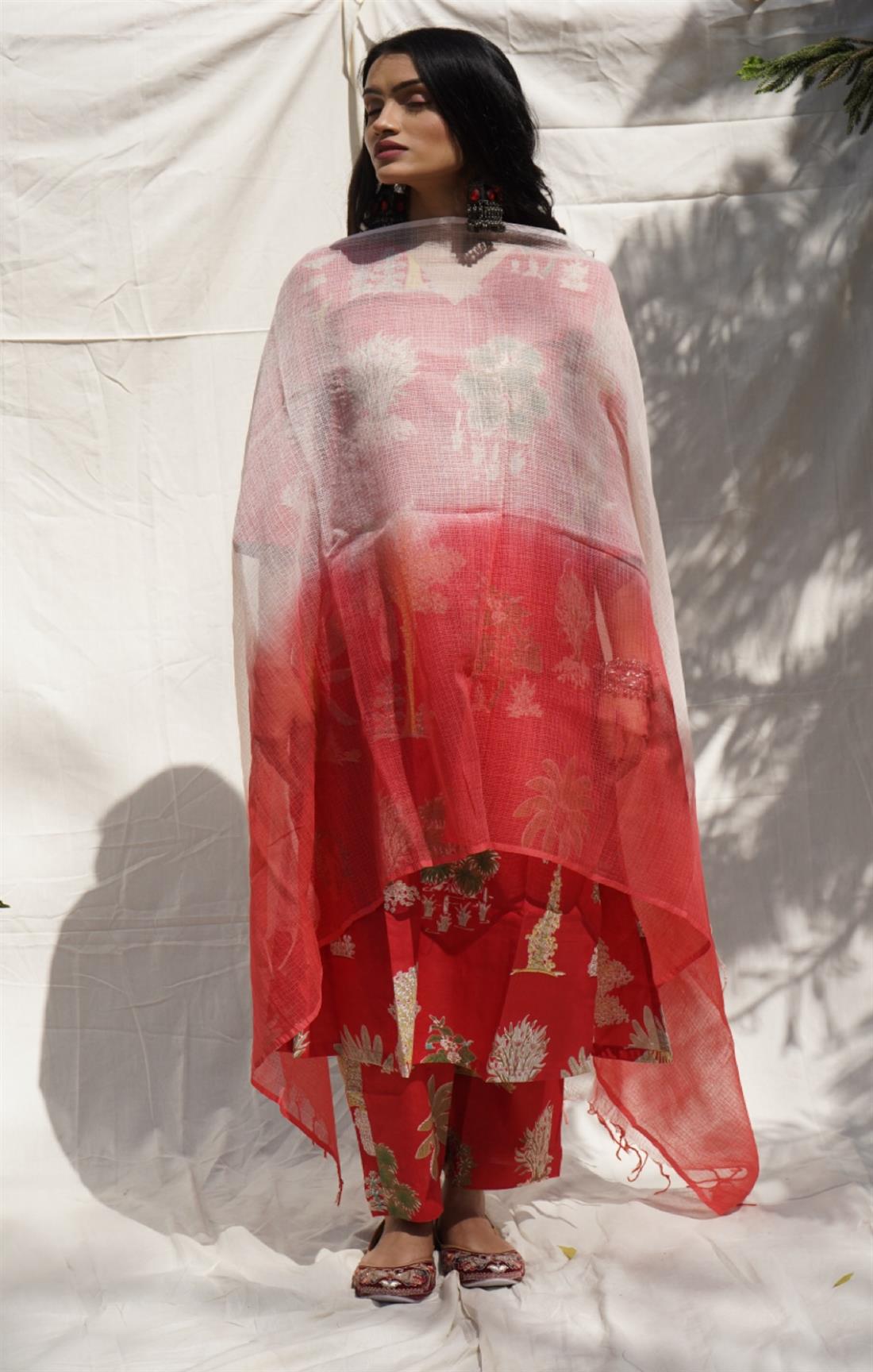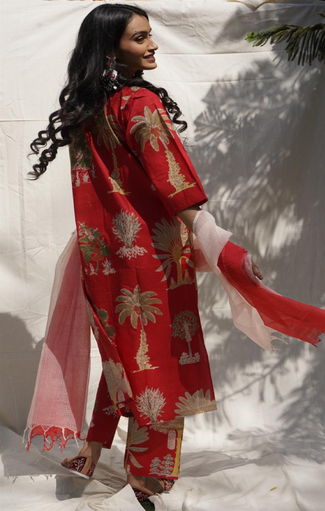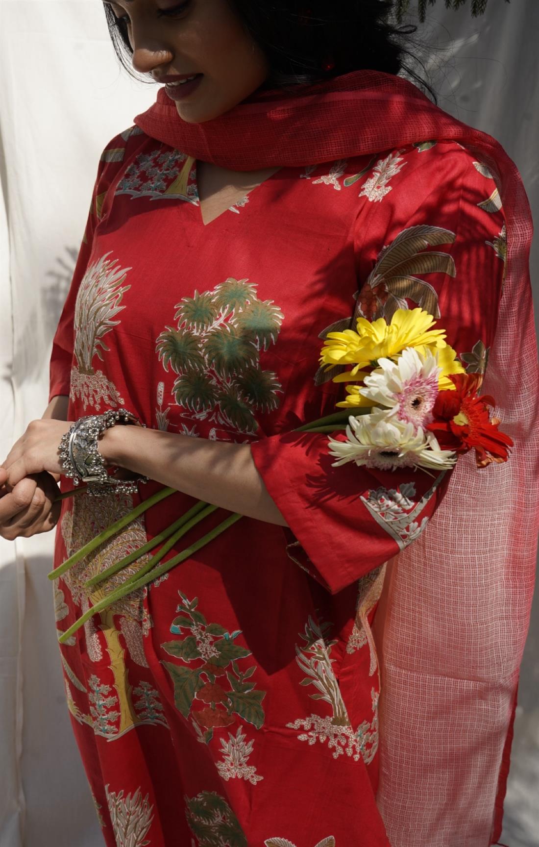 Palm Red Cotton Suit Set