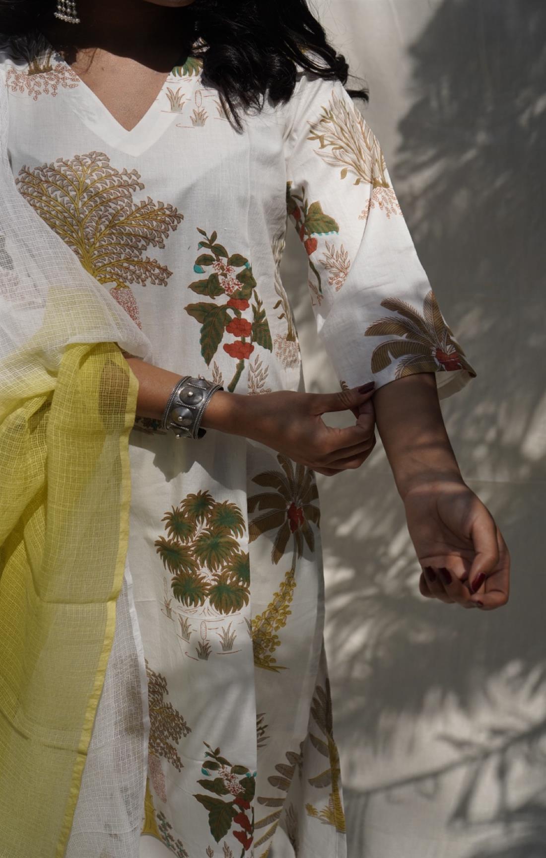 We capture our images using natural sunlight to ensure that the product showcased on our website closely resembles its real-life appearance. Additionally, certain items and shades might appear slightly more vibrant in photographs due to the camera lens accentuating specific colours. Colour perception can differ based on variables like shooting angles, lighting conditions, background shades, and colour temperatures. Hence, there might be a slight variation in prints and colours. However, we make every effort to closely match the tones with the original product hues.