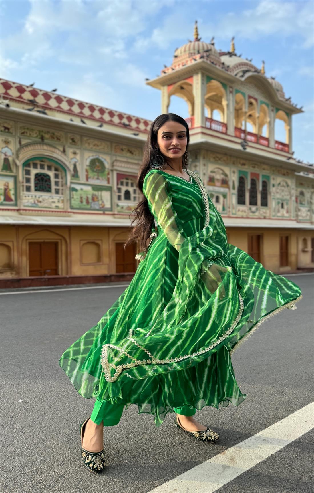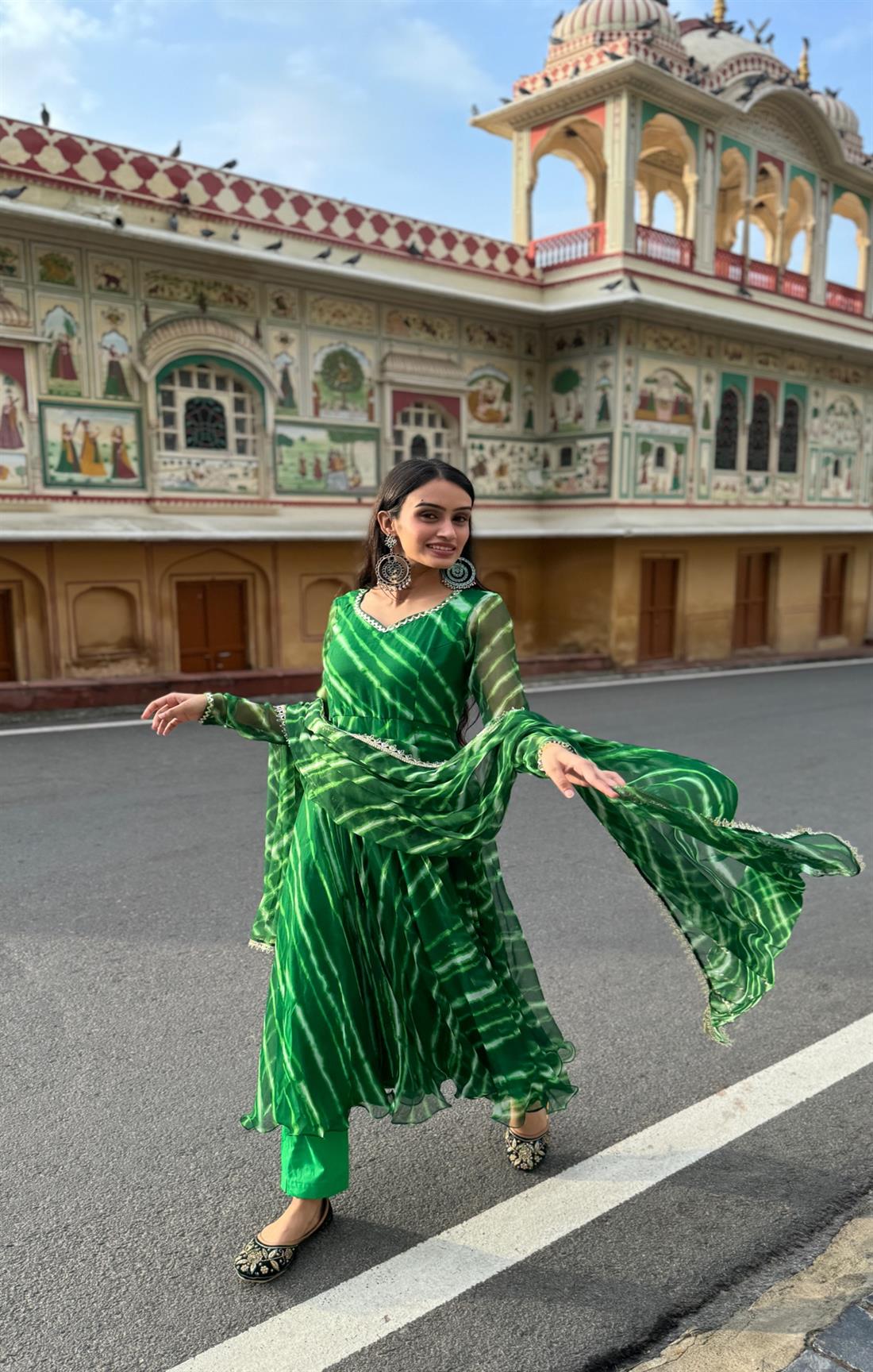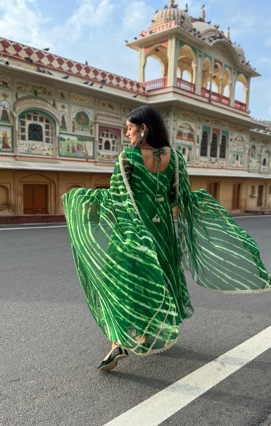 Pitch Dark Green Leheriya Suit Set