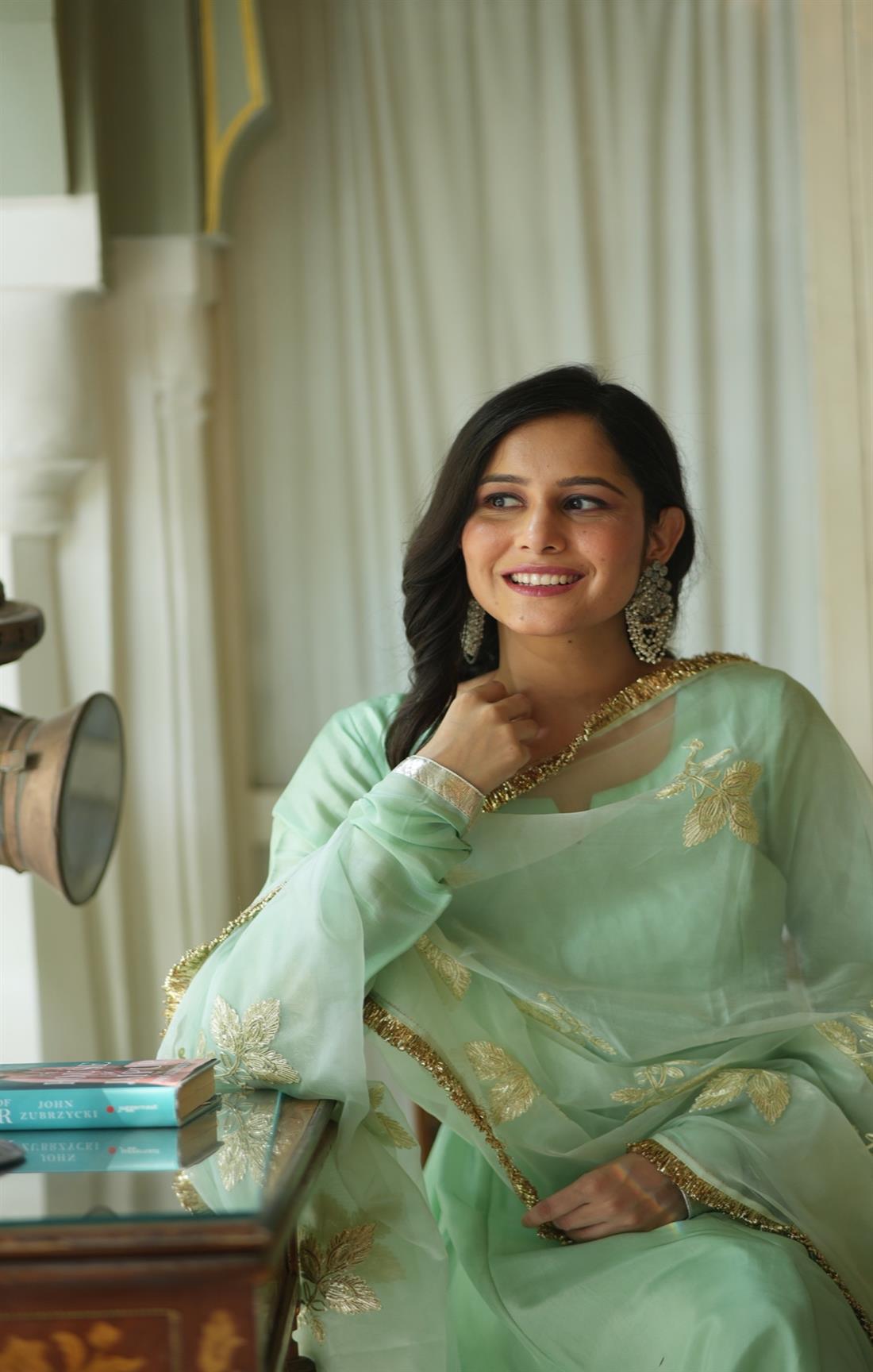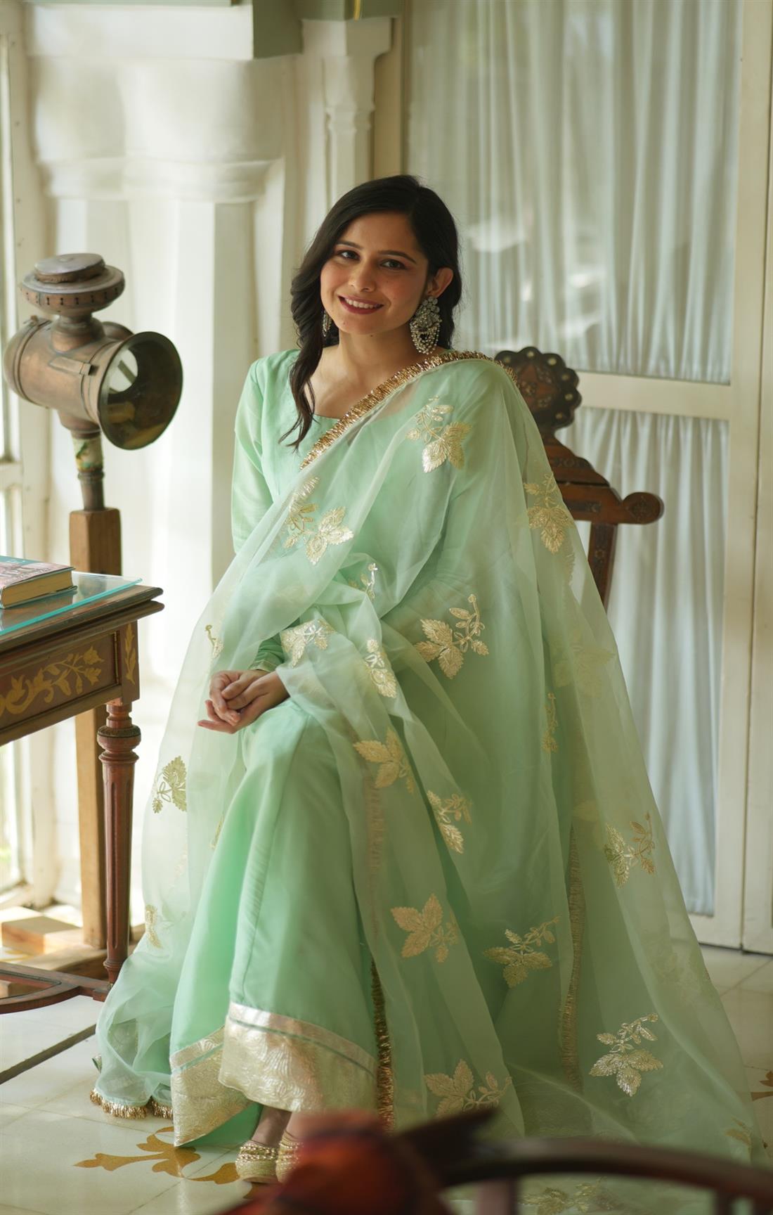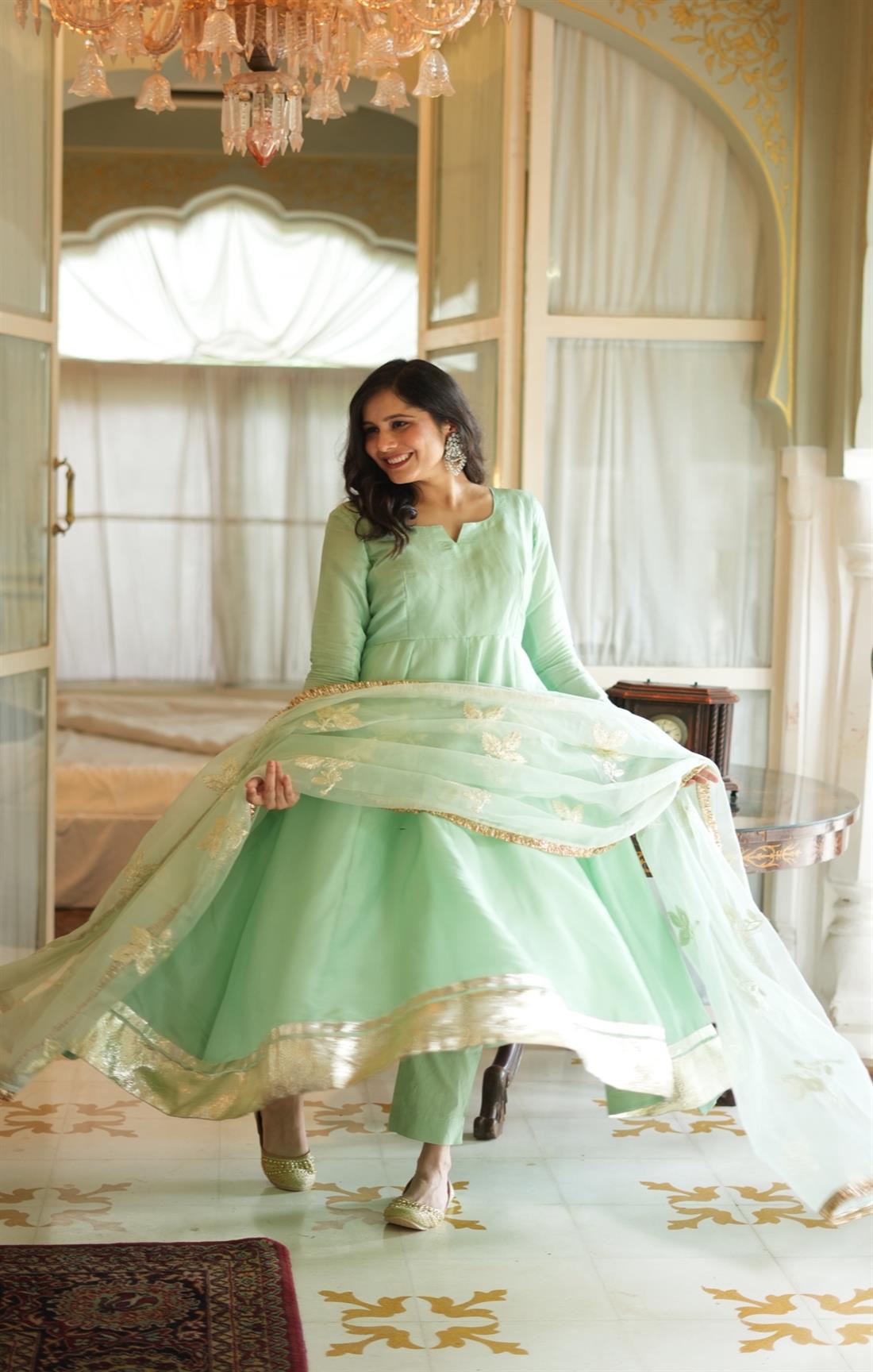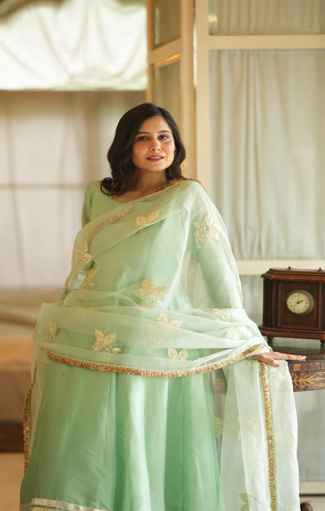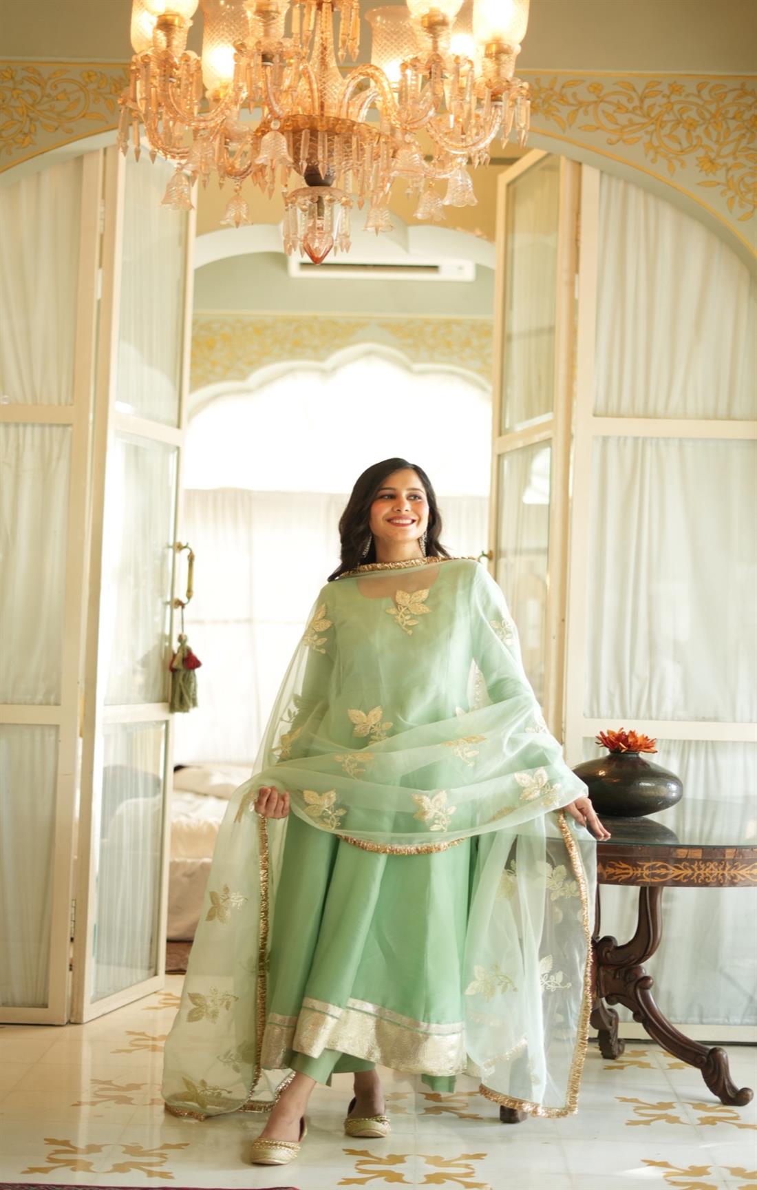 ROOH TEA GREEN SILK SUIT SET