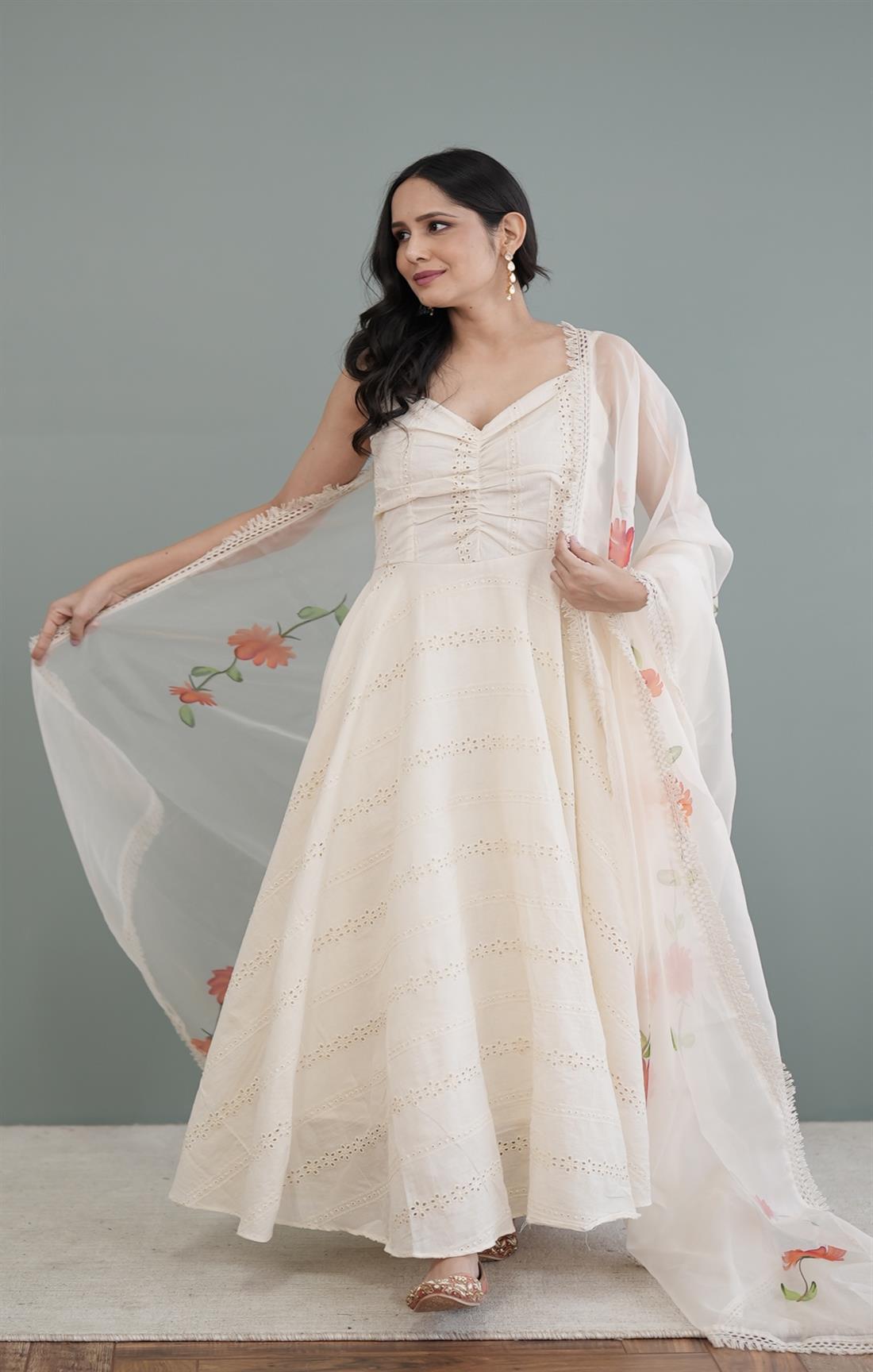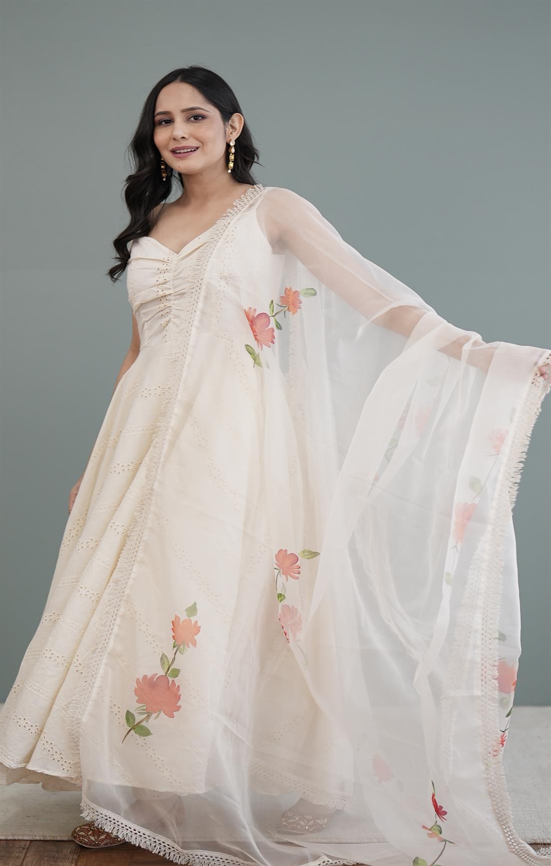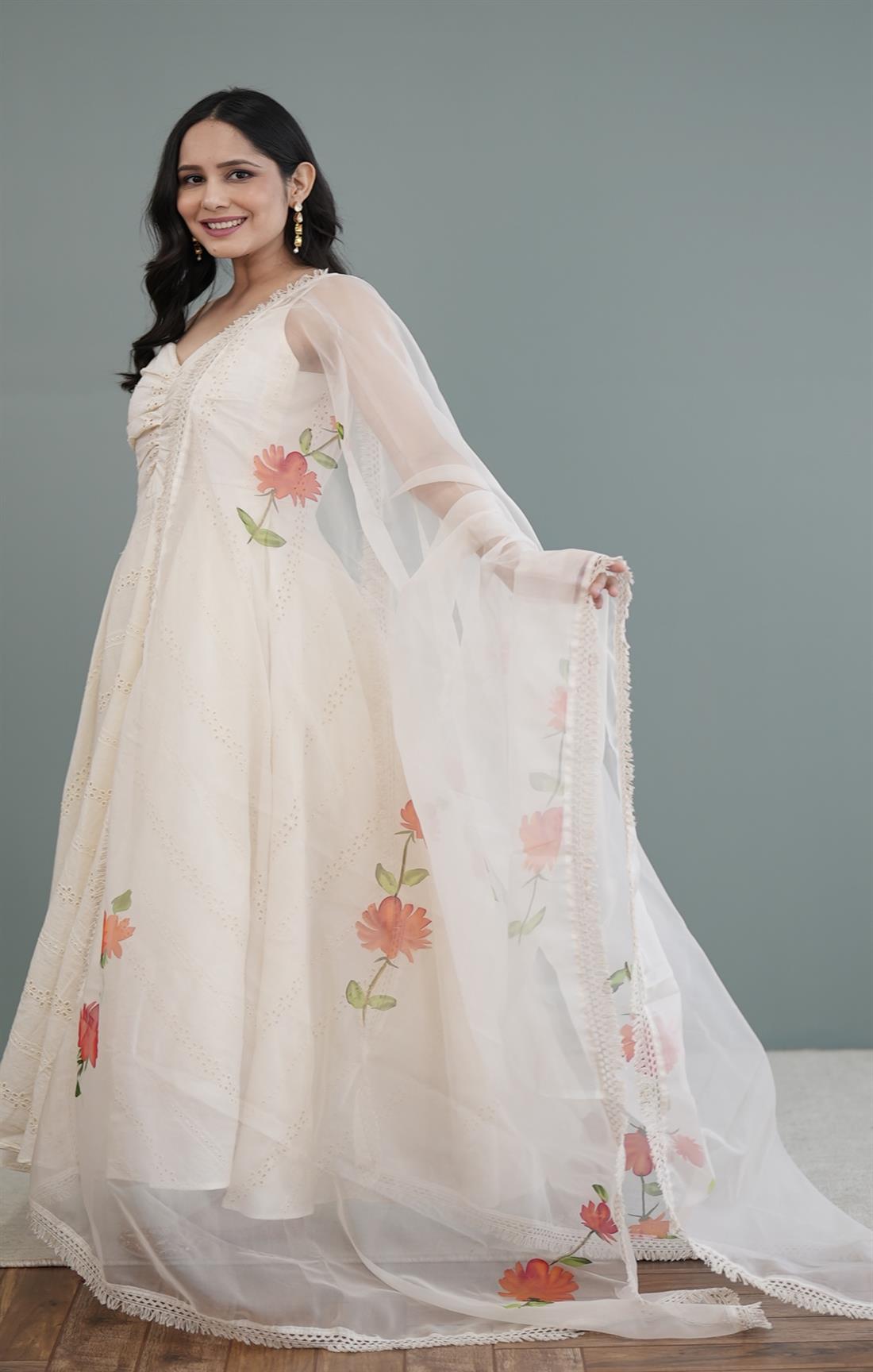 DUPATTA : ORGANZA DUPATTA (HANDPAINTED DETAILS)