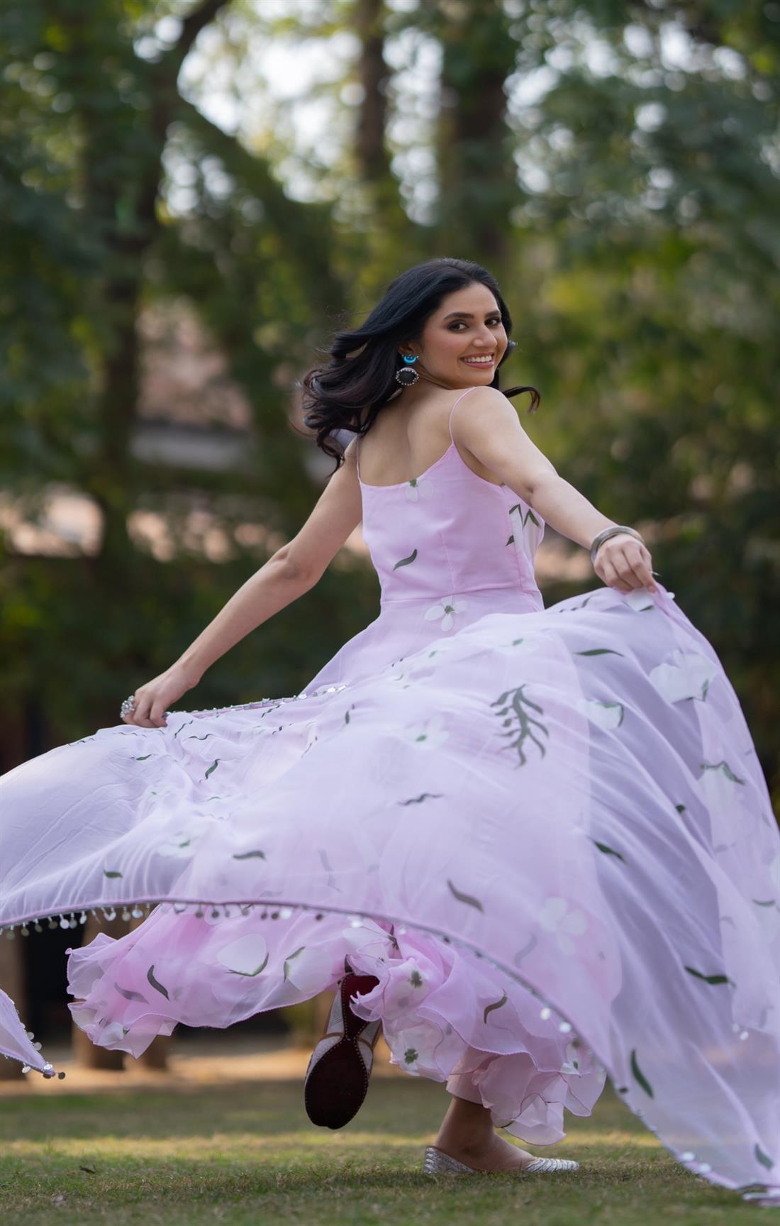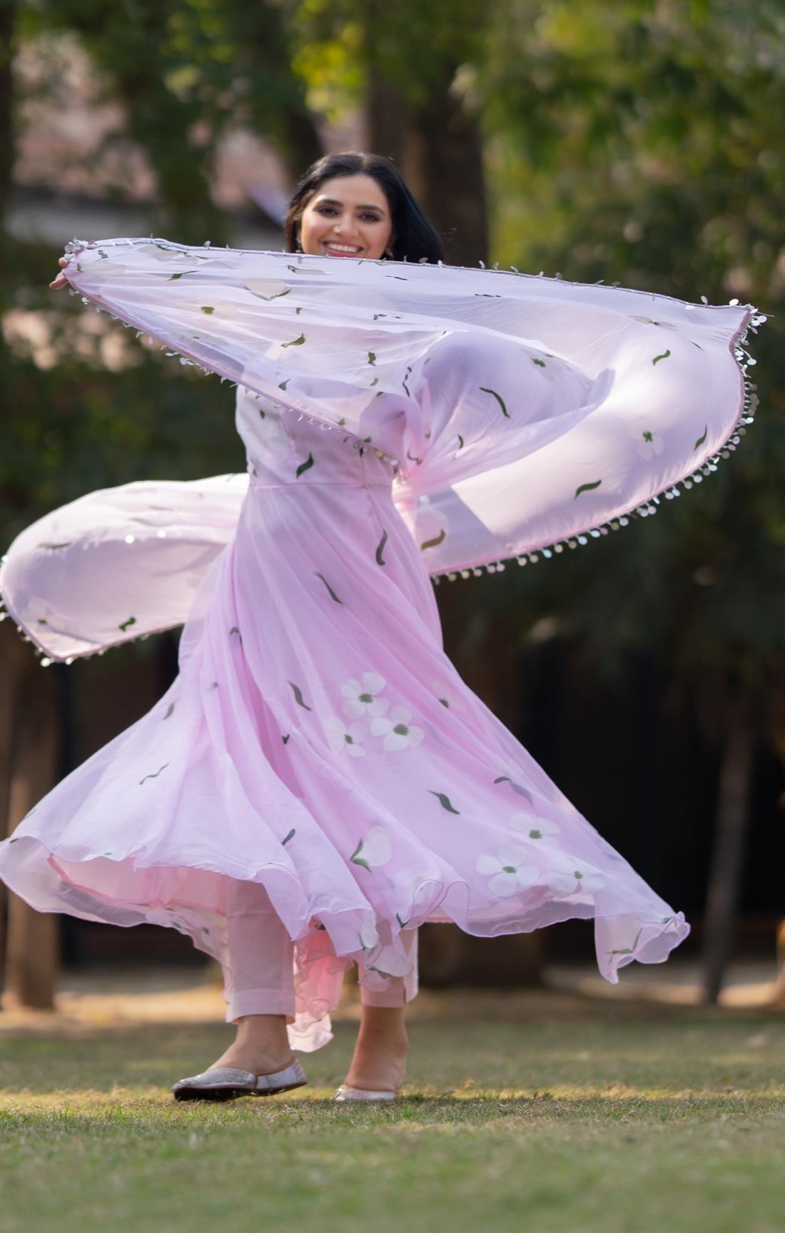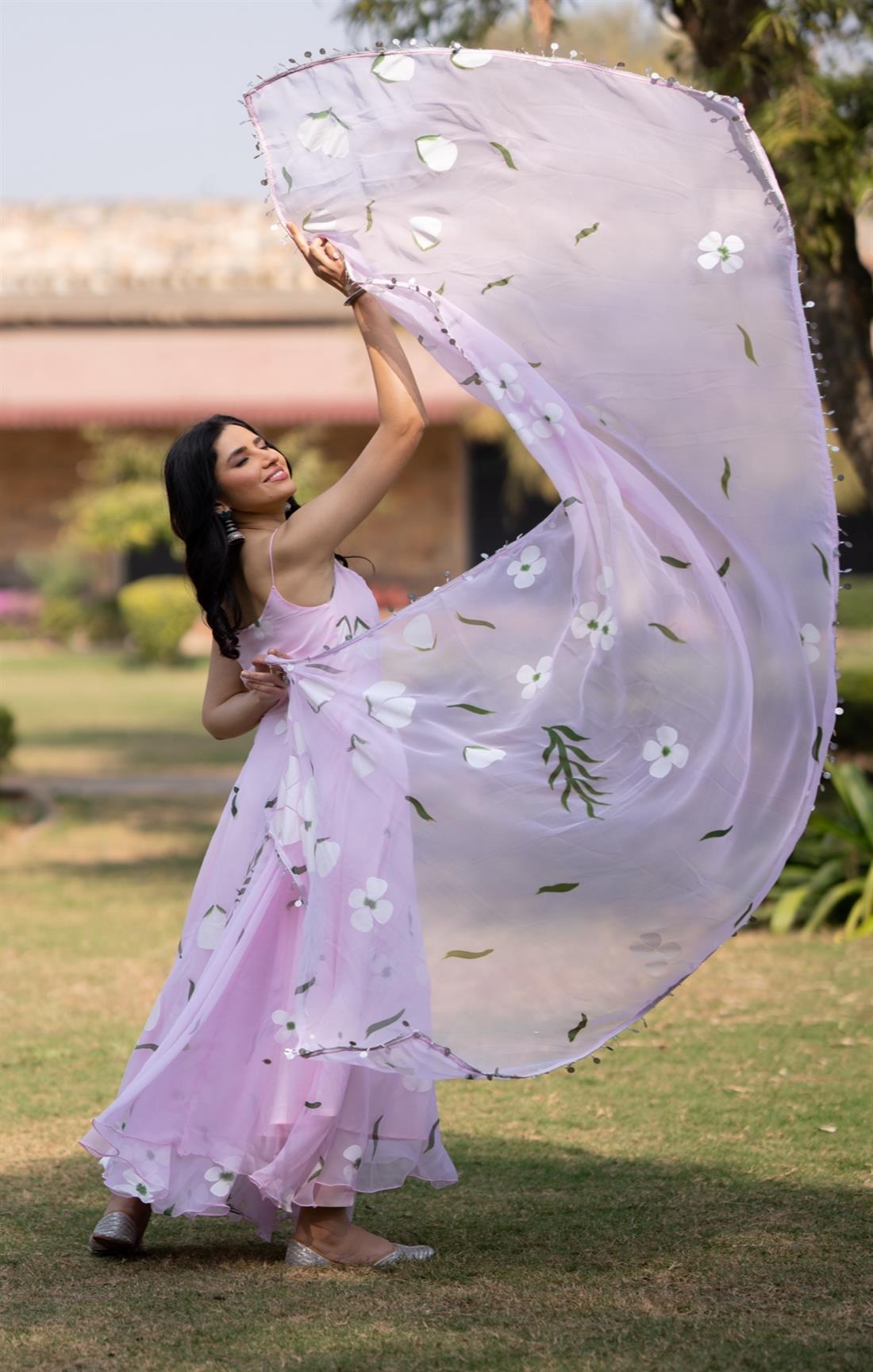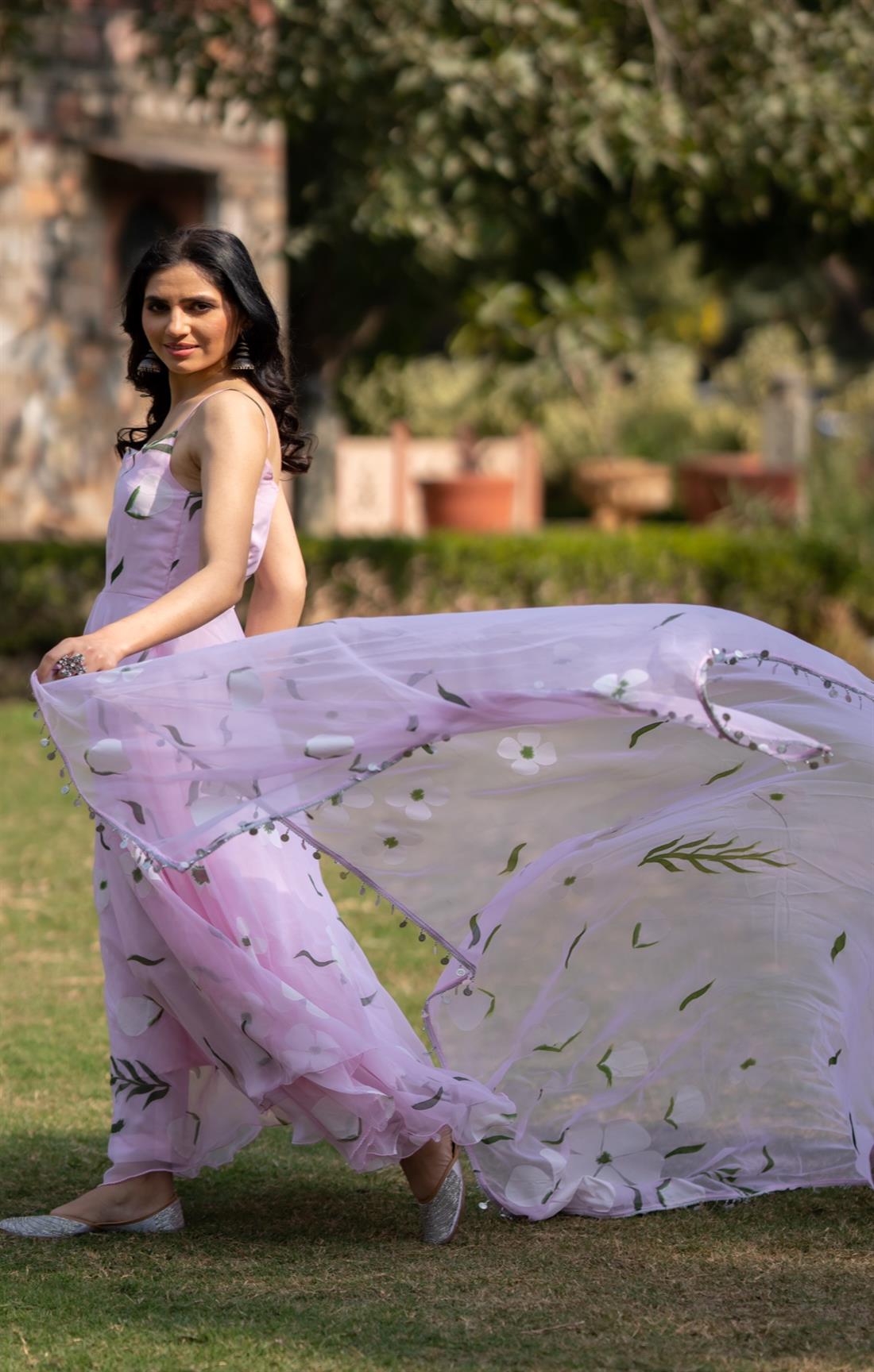 Top : Georgette Chiffon (Handpainted) With Mulmul Cotton Lining