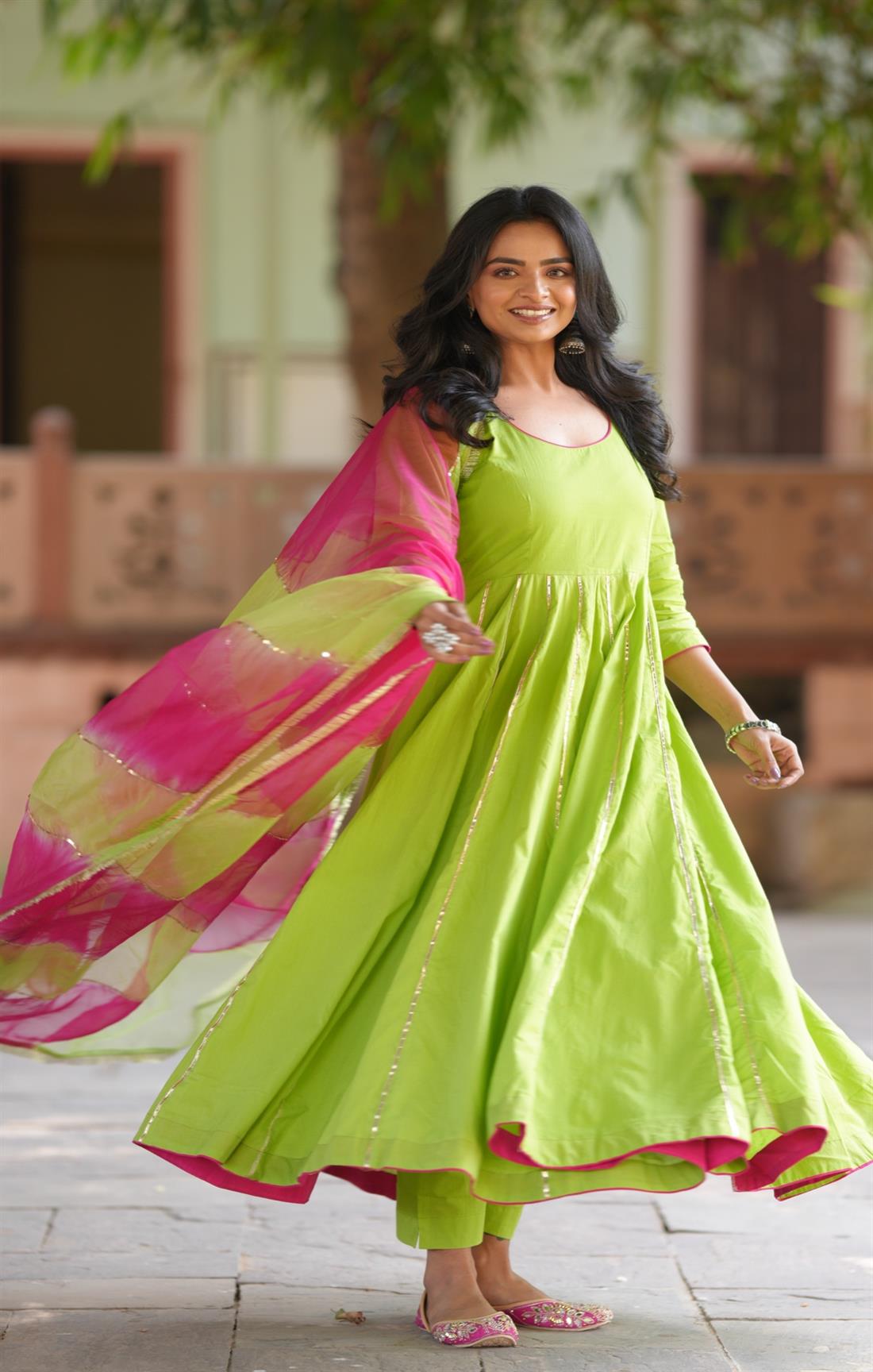 We capture our images using natural sunlight to ensure that the product showcased on our website closely resembles its real-life appearance. Additionally, certain items and shades might appear slightly more vibrant in photographs due to the camera lens accentuating specific colours. Colour perception can differ based on variables like shooting angles, lighting conditions, background shades, and colour temperatures. Hence, there might be a slight variation in prints and colours. However, we make every effort to closely match the tones with the original product hues.
