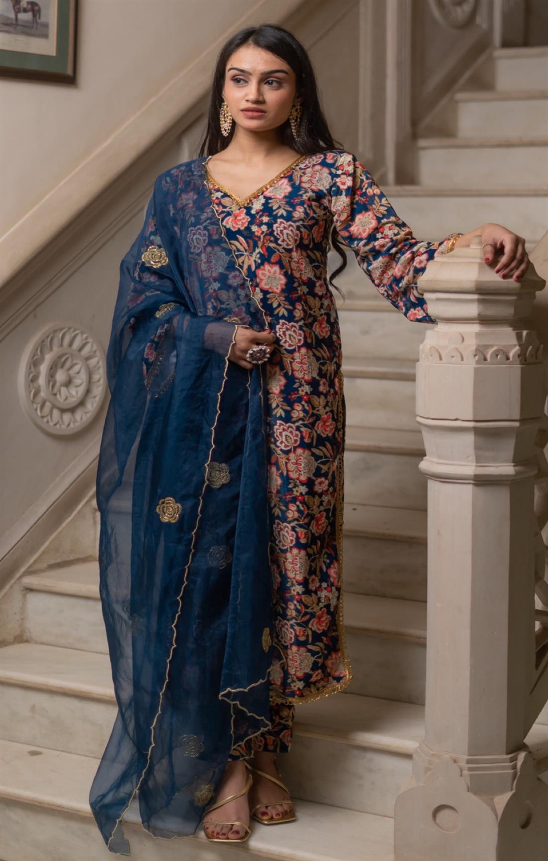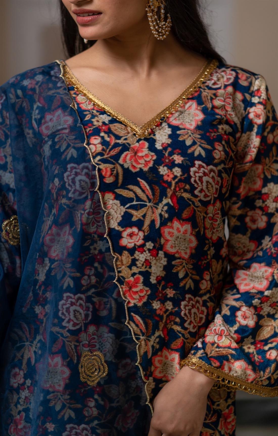 SOOTHING BLUE ROSE VELVET SUIT SET