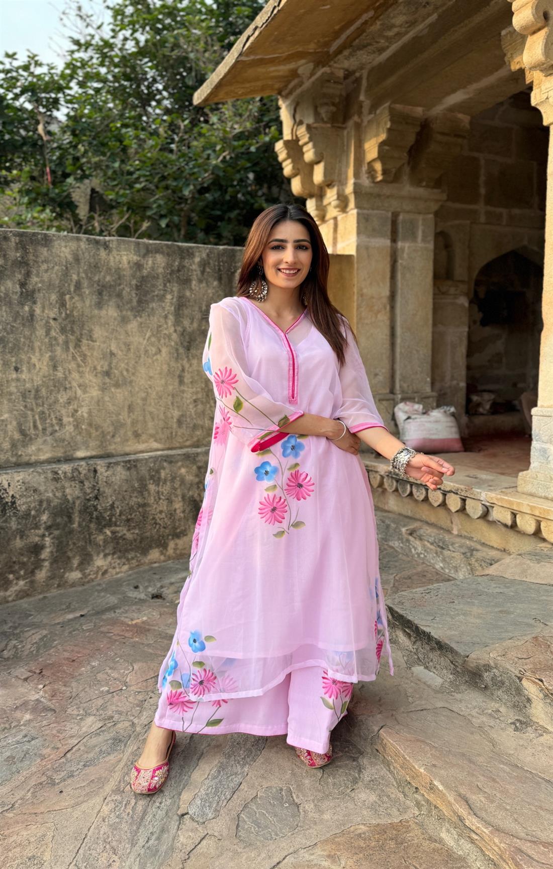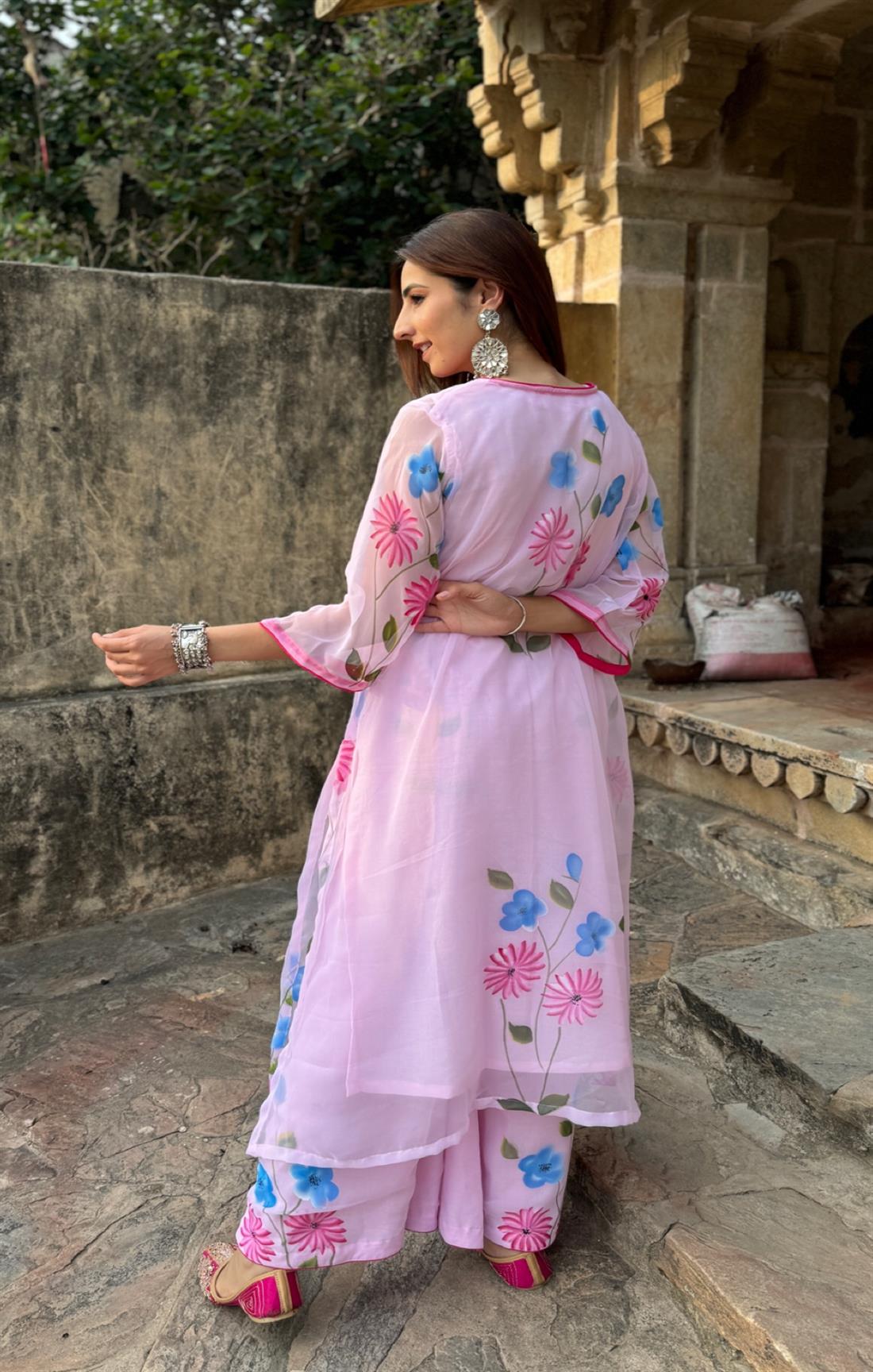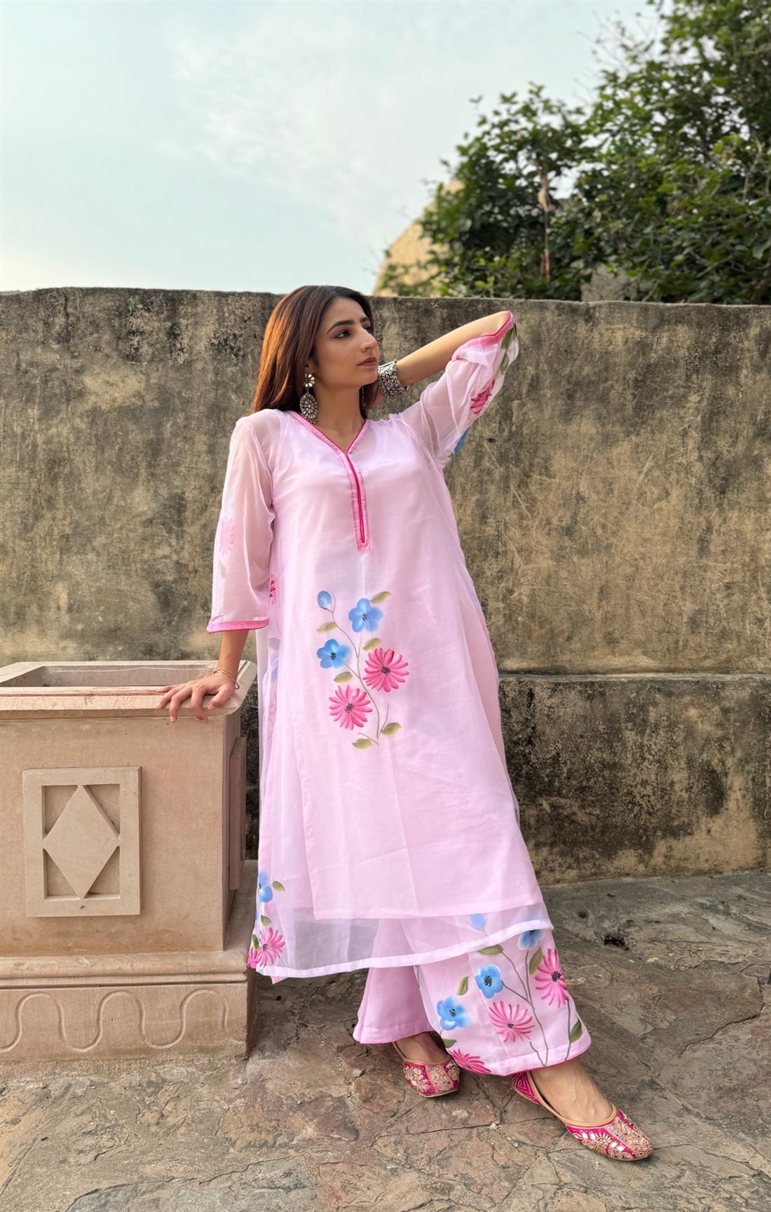 Top: Georgette Chiffon (Handpainted) With Pure Cotton Inner
