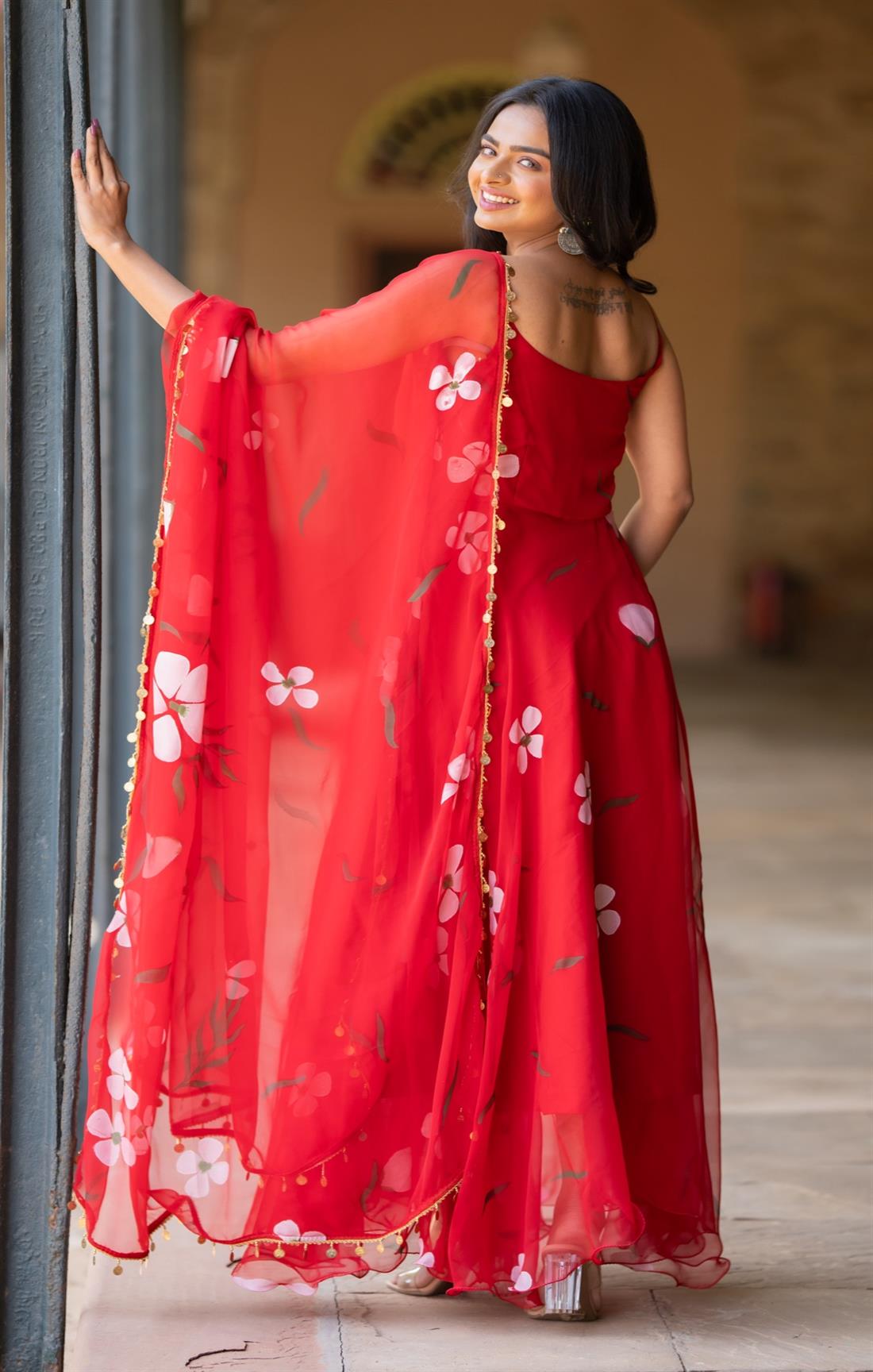 Top : Georgette Chiffon (Handpainted) With Mulmul Cotton Lining
